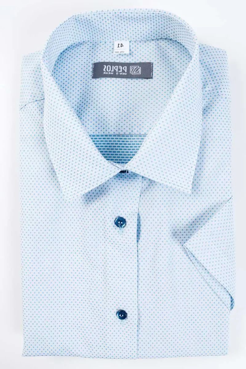 Сорочка мужская Peplos SH19004-K-SL в белом цвете с микродизайном в виде мелких голубых точек – это стильный и современный элемент гардероба, который идеально подходит для различных случаев. Изготовленная из высококачественного материала, состоящего из 96% хлопка и 4% спандекса, она обеспечивает комфорт и легкую эластичность. Силуэт Slim Fit подчеркивает фигуру, а короткий рукав придает рубашке свежий и актуальный вид. Уникальный микродизайн с мелкими голубыми точками добавляет оригинальности и изысканности, делая эту модель идеальной как для повседневной носки, так и для более формальных мероприятий.