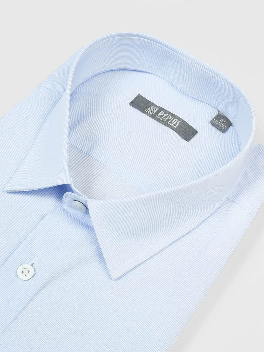 Сорочка с коротким рукавом выполнена в полуприлегающем силуэте, что означает среднее облегание в области талии. Материал ткани-100% хлопок, что особенно важно жарким летом. Светлый цвет сорочки также поможет избежать излишнего нагрева. А рисунок в виде голубой полоски придаст образу выразительности.