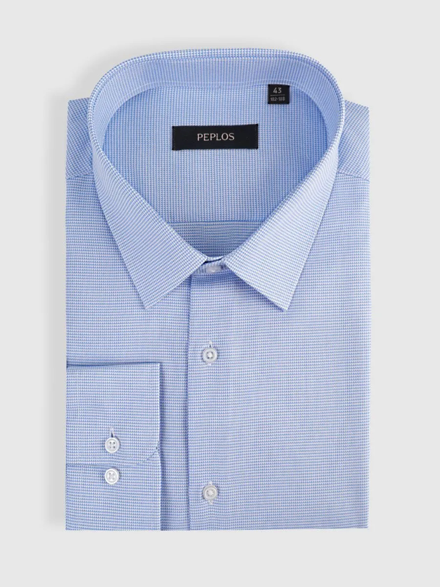 Базовая модель сорочки голубого оттенка с длинным рукавом является основой гардероба, легко сочетаясь с различными элементами одежды. Она может быть надета под пиджак для создания делового образа, с джинсами для повседневного стиля. Прямой крой не сковывает движения, а фактурный узор притягивает взгяды и делает сорочку интересной. Аксессуары, такие как галстук, бабочка, запонки или шейный платок, могут добавить индивидуальность и завершенность образу.