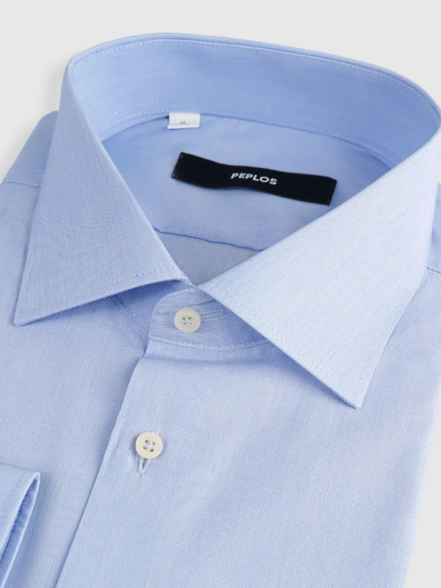 Голубая мужская сорочка представлена в приталенном силуэте. Приталенный силуэт подчеркивает достоинства фигуры, не сковывая движений, что делает ее подходящей как для офисного дресс-кода, так и для более расслабленной обстановки. Фактурная ткань добавляет глубины и визуального интереса, отличая эту модель от обыденных рубашек. Широко расставленный воротник – деталь, позволяющая носить сорочку как с галстуком, так и без него, создавая различные образы в зависимости от случая. Он отлично сочетается с узкими и широкими галстуками, а также эффектно выглядит с расстегнутыми верхними пуговицами, придавая образу непринужденность.