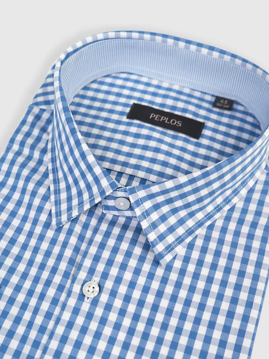 Мужская сорочка с коротким рукавом прямого силуэта. Выполнена из ткани в контрастную клетку. Модель базовая с карманом, длина под заправку.