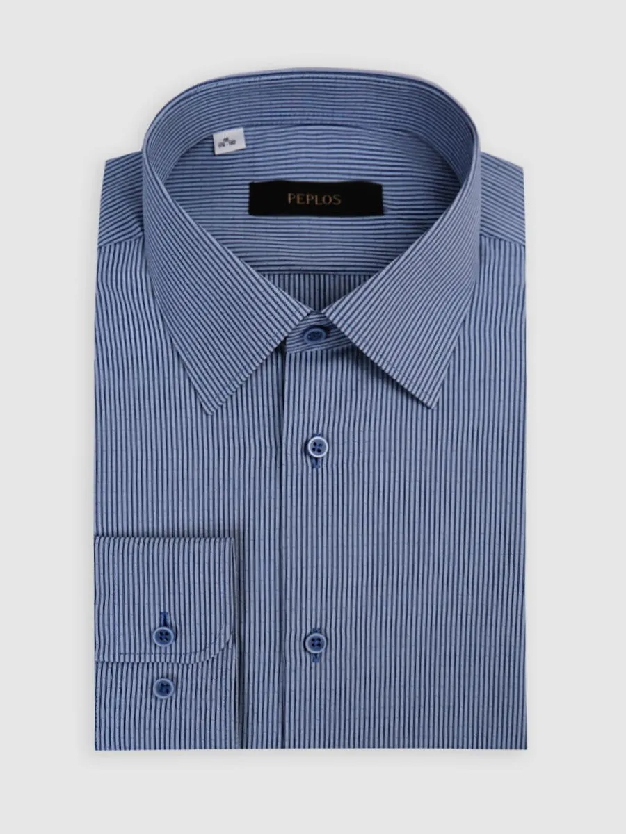 Мужская сорочка синего цвета – это элегантное сочетание классики и современности. Приталенный силуэт подчеркнет достоинства фигуры, а рисунок в полоску придаст образу свежесть и непринужденность. Состав ткани, состоящий из 55% хлопка и 45% полиэстера, гарантирует комфорт в носке и легкость в уходе.