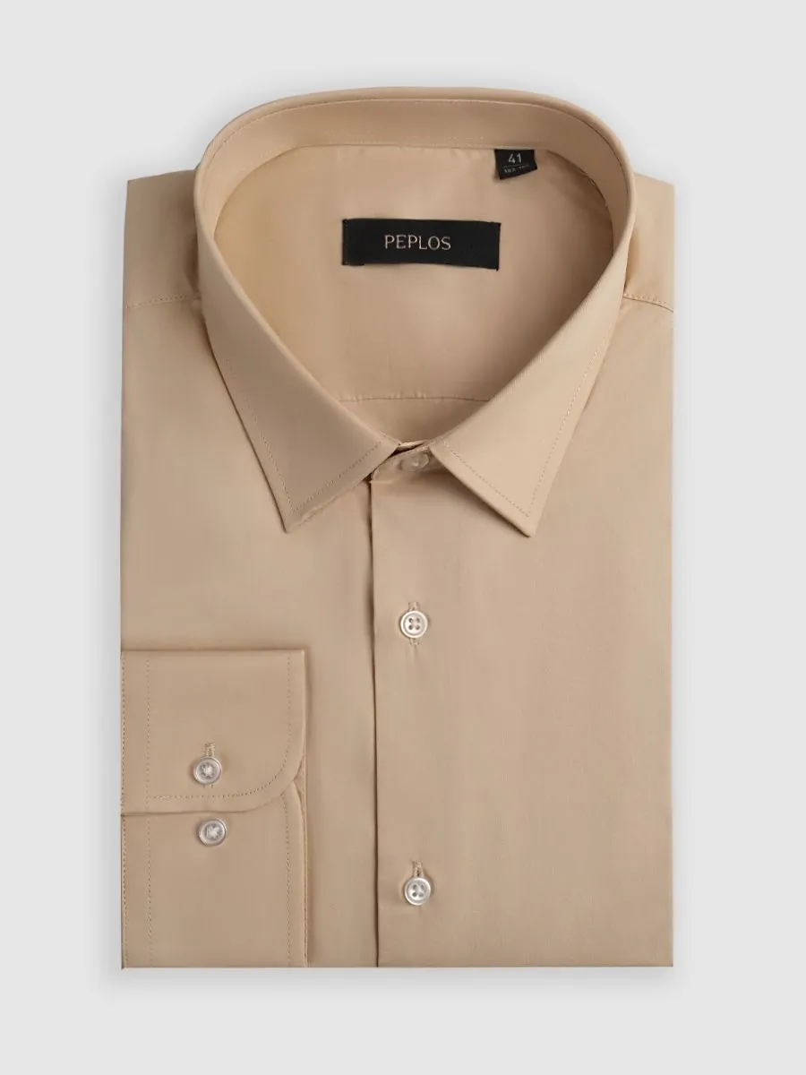 Мужская сорочка цвета шампань. Насыщенный оттенок придает ей особую глубину и шарм, а однотонная гладь подчеркивает безупречность материала. Приталенный силуэт идеально подчеркивает достоинства фигуры, создавая элегантный и современный образ.