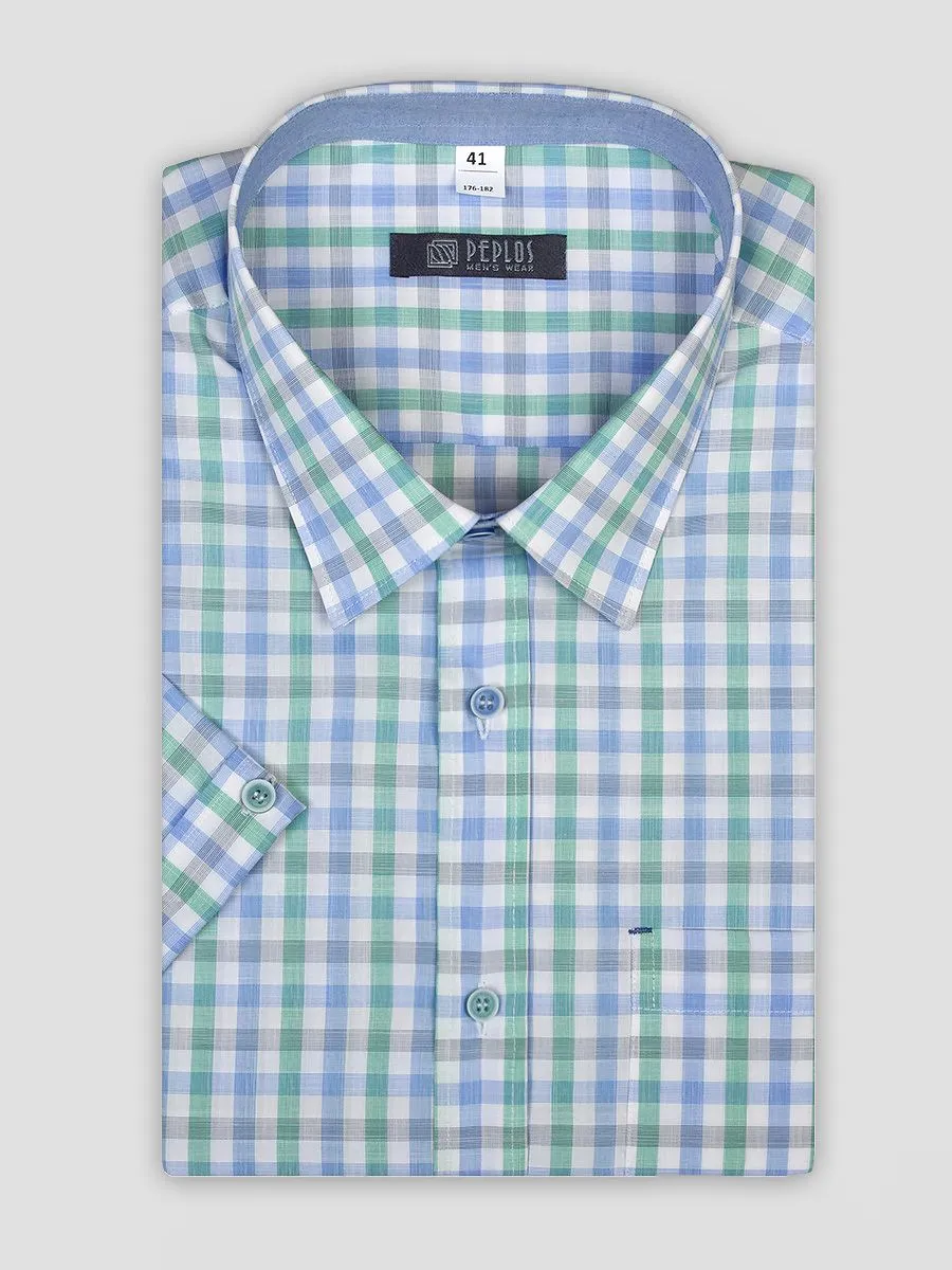 Сорочка мужская Peplos SH20091-K-SL в зеленом цвете – это стильный и свежий элемент гардероба, который отлично подходит для различных случаев. Изготовленная из 100% хлопка, она обеспечивает комфорт и приятные ощущения на коже. Дополнительная отделка LA придает рубашке дополнительную мягкость и улучшает ее внешний вид. Силуэт Slim Fit подчеркивает фигуру, а дизайн в клетку, где зеленые, серые и голубые полоски на белом фоне образуют эффектный узор, добавляет оригинальности и динамичности. Эта модель с коротким рукавом станет отличным выбором как для повседневной носки, так и для более формальных мероприятий, позволяя легко сочетать ее с различными стилями.