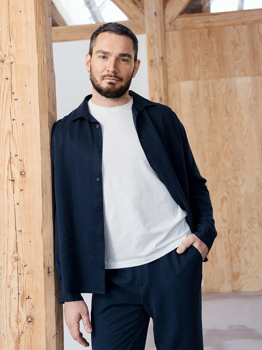 Новая модель рубашки выполнена из фактурной ткани в стиле рубашки Oversize. Материал изделия 100% тенсел. Это инновационный и натуральный материал, по своим свойствам напоминающий шёлк и вырабатываемый из волокон эвкалиптового дерева. Рубашка нежная и приятная на ощупь, имеет шелковистый блеск и при этом достаточно прочная.К данной рубашке есть отличное дополнение - брюки из той же ткани TR24133-241. Носите эту рубашку в комплекте с брюками, создавая расслабленный образ, или как верхний слой с футболкой в сочетании с брюками casual или шортами.