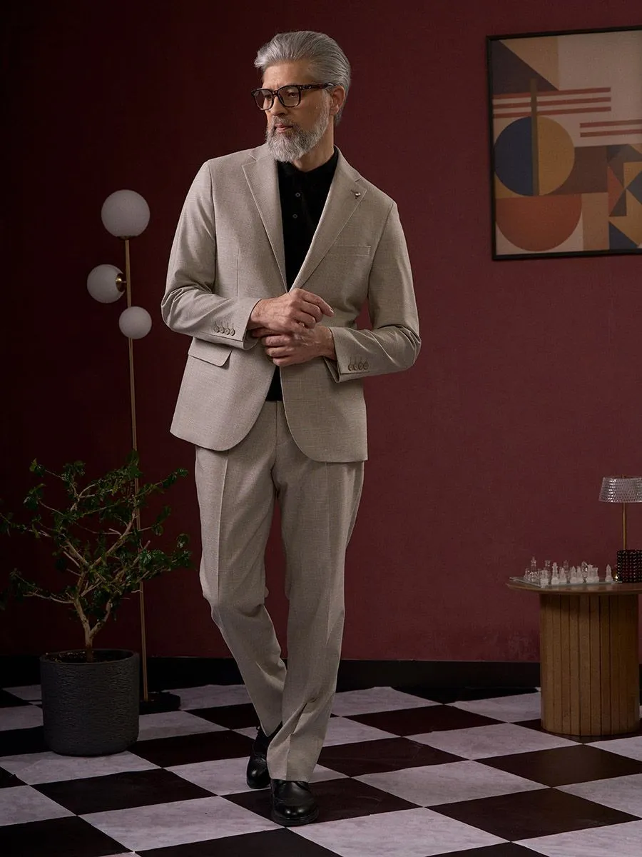 Модель костюма построена на гармоничном сочетании классических мотивов и актуального комфорта, предлагая образ, уместный как для неформальной городской среды, так и для особых, но непринуждённых событий. Силуэт костюма определяется несколькими важными чертами. Мягкое плечо — основа его эстетики. Оно позволяет пиджаку естественно повторять линию тела, создавая непринуждённую, слегка живую форму. Это решение уходит от строгого конструктива в сторону большей пластичности и тактильного комфорта. Широкий лацкан, пропорциональный мягкому плечу, добавляет лаконичный акцент, подчеркивая линию груди и придавая пиджаку отсылку к классическому крою, но в смягчённой, современной интерпретации. Брюки костюма прямого кроя завершаются современной и практичной деталью — резинкой в поясе. Этот элемент кардинально меняет ощущение от костюма, смещая акцент с формальности на абсолютный комфорт и свободу движения. Этот костюм — не просто одежда, а продуманная концепция. Он для того, кто ценит в вещах умный крой, качественные материалы, визуальную привлекательность и, что немаловажно, внутреннюю свободу. Он говорит не о статусе, а о стиле и осознанном выборе в пользу элегантности без напряжения.