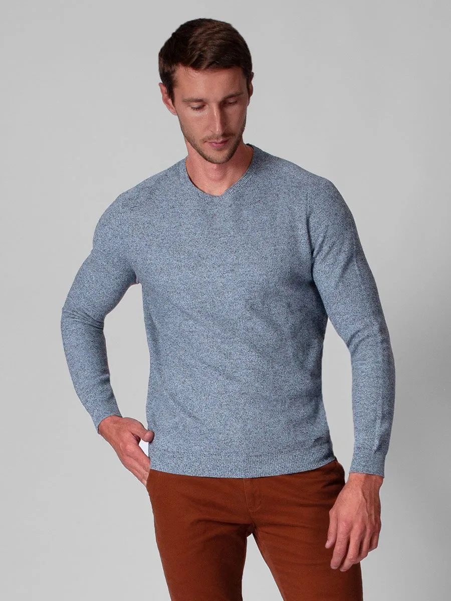Серый джемпер Peplos из 100% хлопка сочетает в себе пряжу светлых и темных тонов. Мелкая фактурная вязка по всему изделию усиливает эффект меланжа. Круглый ворот открывает шею и создает более строгий образ. Джемпер отделан замшевой тесьмой по внутренней части горла для более комфортной носки. Завершить образ можно терракотовыми брюками в стиле Casual P2013-SL. Такой образ подходит как для выходного дня, так и рабочих будней.