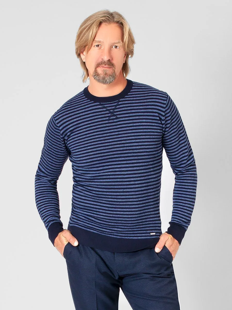 Джемпер мужской Peplos KN22J016 в синем цвете – это стильный и универсальный элемент гардероба, который идеально подходит для повседневной носки. Изготовленный из 100% хлопка, он обеспечивает комфорт и приятные ощущения на коже. Модель с 12gg и круглым воротом придает джемперу классический вид, а полосатый дизайн добавляет динамичности и оригинальности. Этот джемпер отлично сочетается с джинсами, брюками или шортами, делая его идеальным выбором для различных случаев.