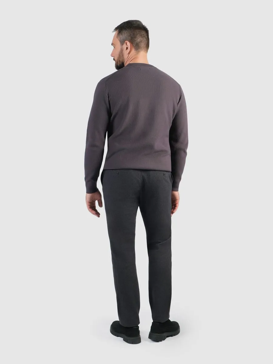 Мужской джемпер представлен в графитовом оттенке. Мелкий жаккард по всему изделию. Изготовлен из мягкой натуральной пряжи. Этот джемпер будет не только стильным акцентом в вашем гардеробе, но и практичным выбором для повседневного использования. Идеально комбинируется с джинсами или casual брюками, добавляя изысканности любому образу.