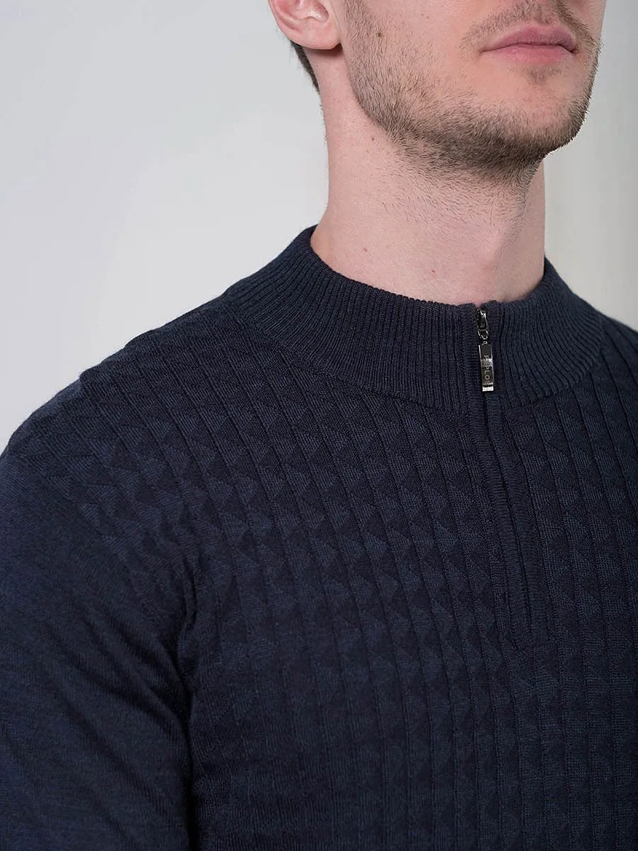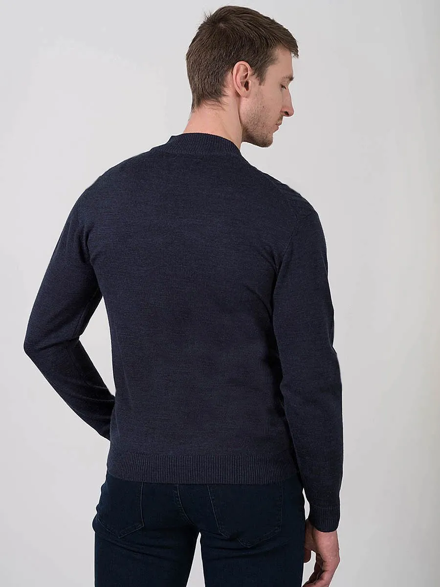 Трикотажный джемпер со стойкой и молнией в области воротника выделяется интересным и сложным жаккардовым рисунком. Этот джемпер подходит тем, кто предпочитает классический стиль в одежде без лишних деталей. Джемпер согреет в холодную погоду благодаря 40% шерсти в составе, акрил же придает изделию износостойкость и практичность. Его надевают как поверх футболки, так и без нее, ведь джемпер не колется и приятен на ощупь.