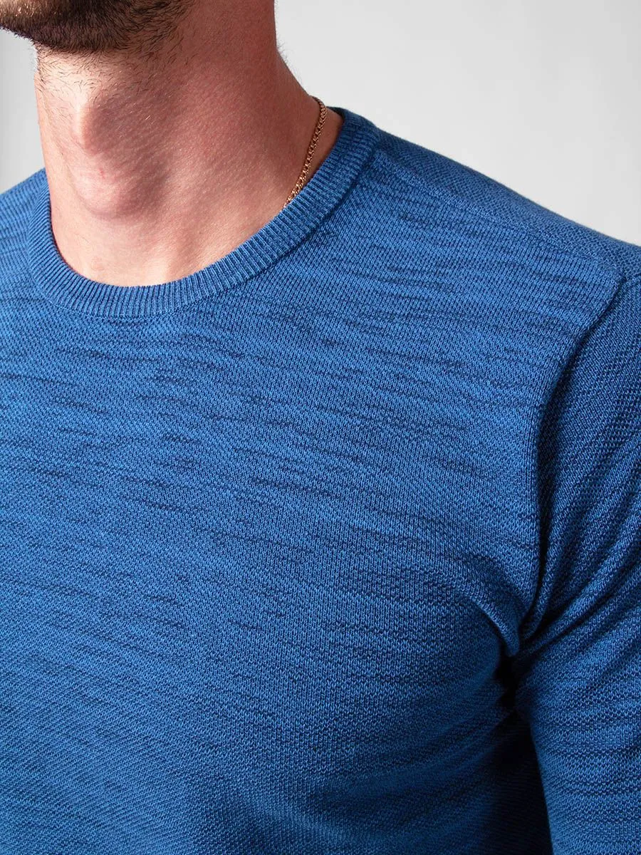 Ярко-голубой джемпер Peplos, напоминающий свитшот, станет приятным дополнением в гардеробе мужчины, который обожает данный вид одежды. Он выполнен из 100% хлопковой пряжи сильного кручения. Эффект меланжа у этого изделия очень сильно выражен. По низу изделия и низу рукавов добавлена плоскошовная декоративная строчка в тон. Завершить образ можно терракотовыми брюками в стиле Casual P2013-SL. Такой образ подходит как для выходного дня, так и рабочих будней.