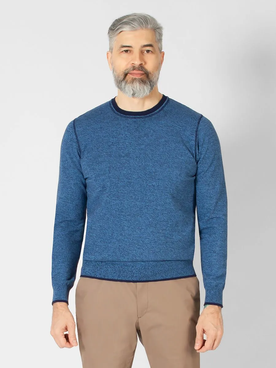 Джемпер мужской Peplos KN22J030 в синем цвете с темно-синим воротником – это стильный и универсальный элемент гардероба, который отлично подходит для повседневной носки. Изготовленный из 100% хлопка, он обеспечивает комфорт и приятные ощущения на коже. Модель с 12gg и круглым воротом придает джемперу аккуратный и современный вид, а меланжевый дизайн добавляет оригинальности и текстуры. Этот джемпер станет отличным выбором для создания стильных образов, легко комбинируясь с джинсами, брюками или шортами.