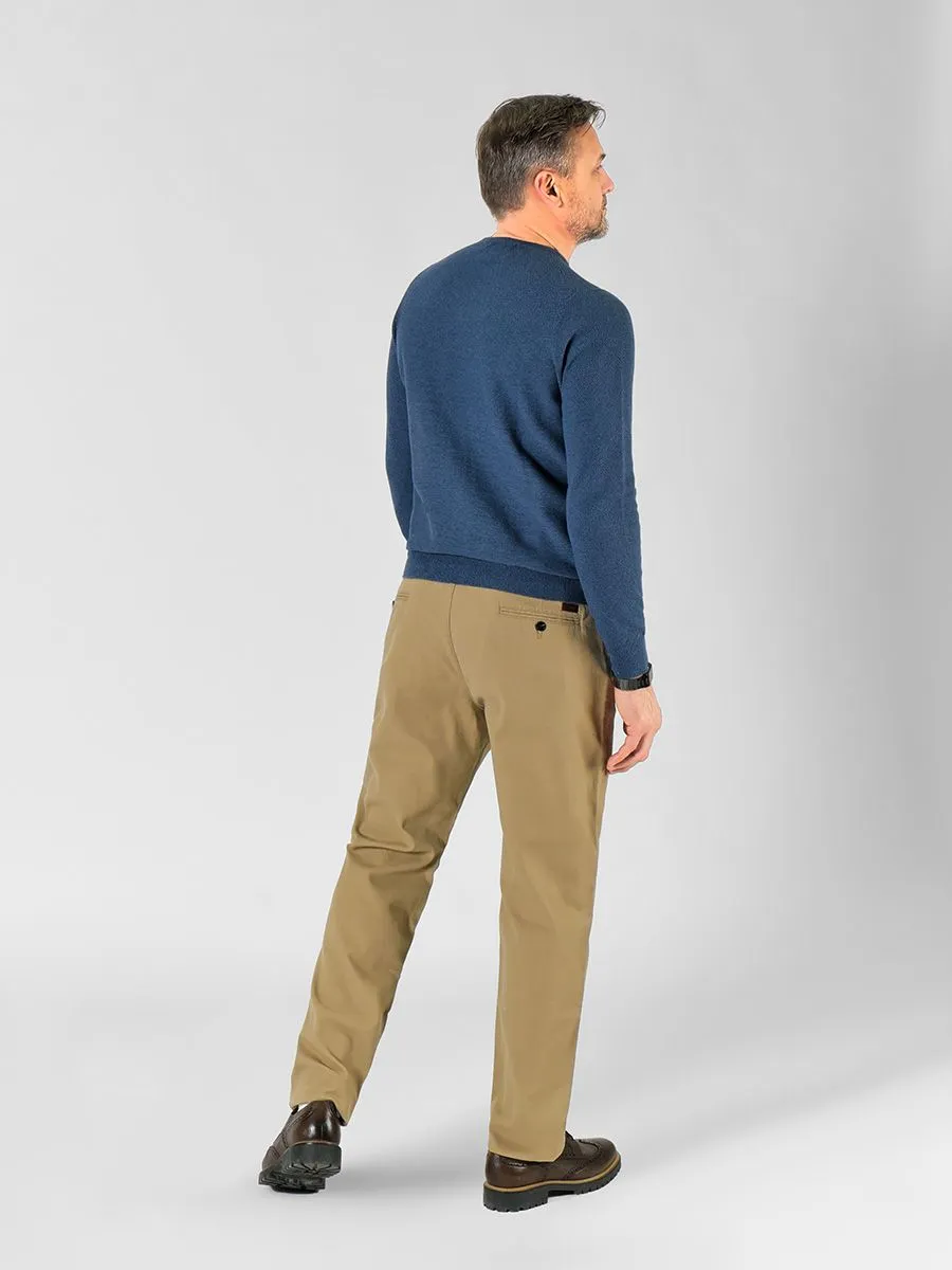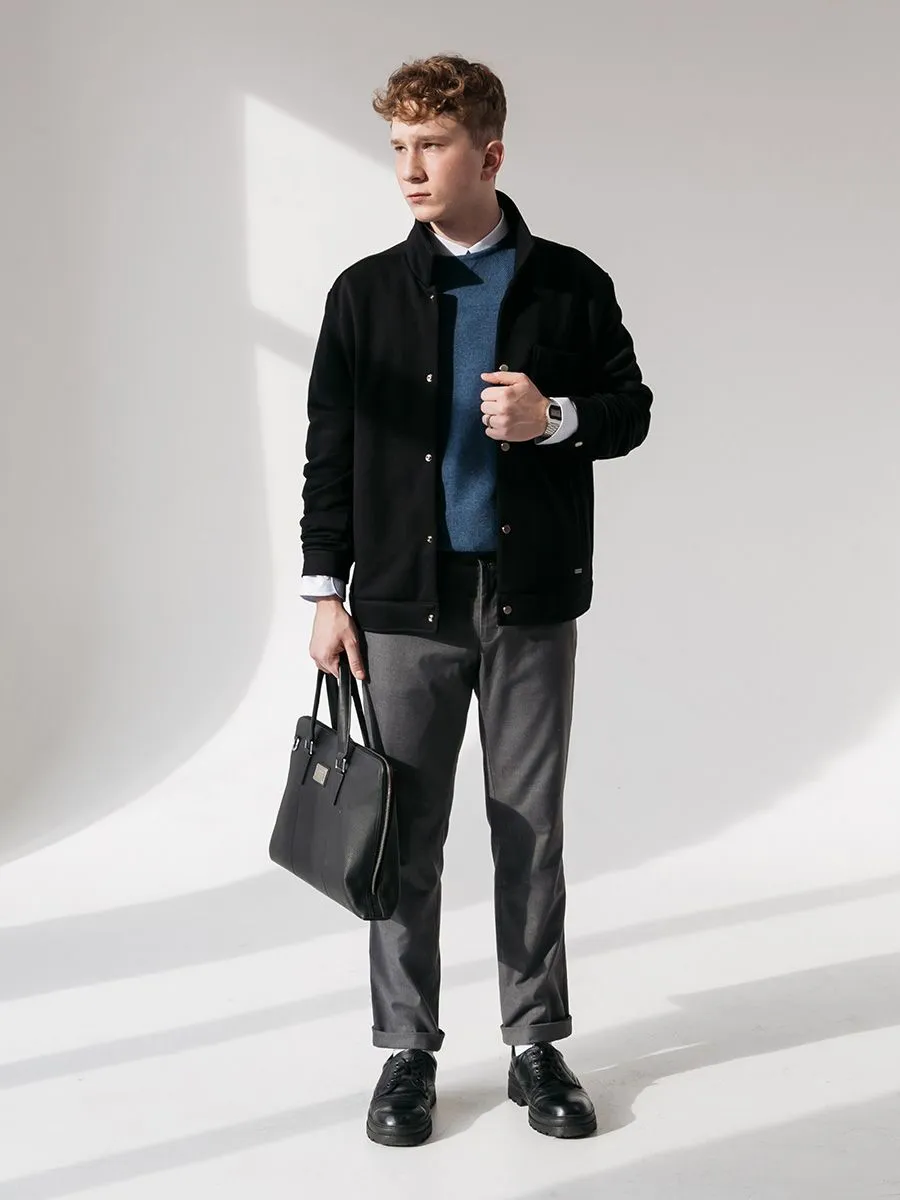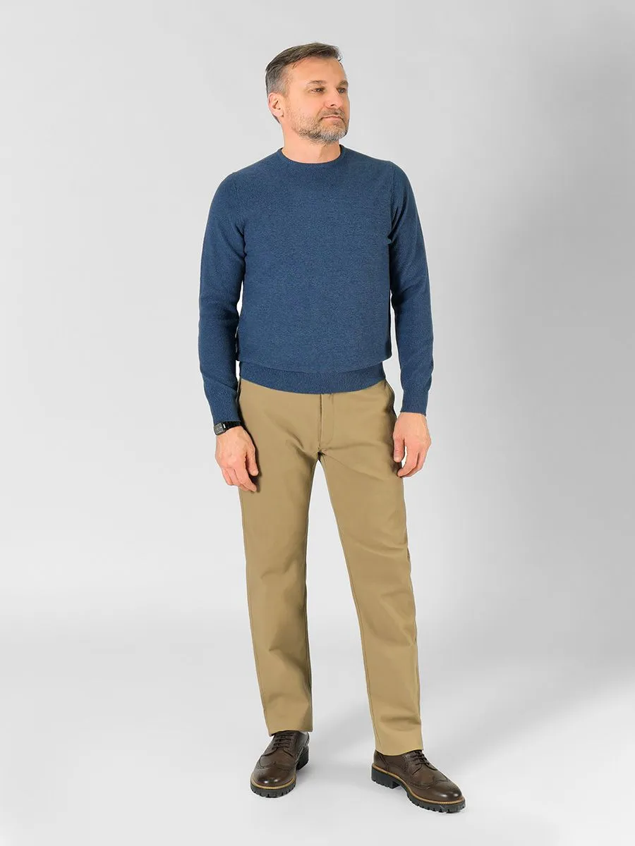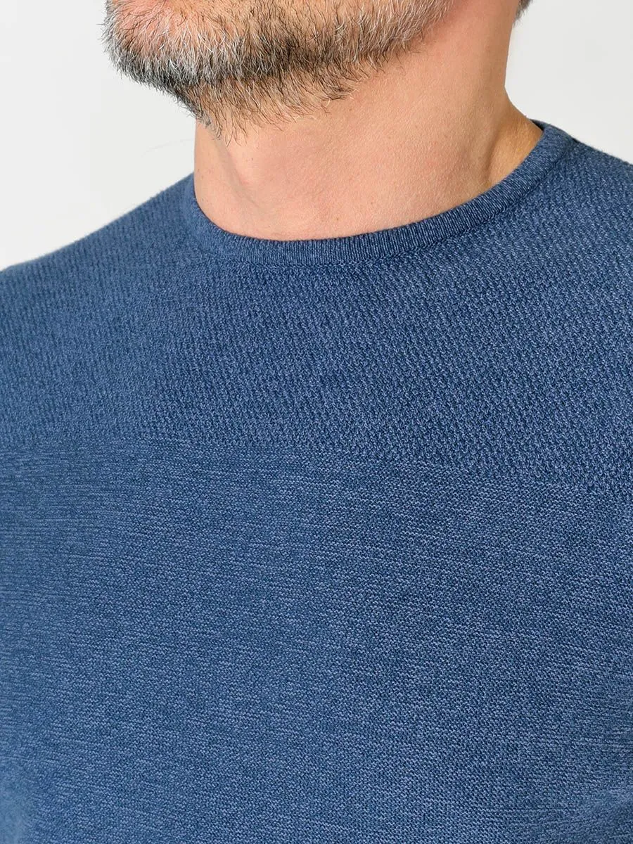 Джемпер включает в себя два вида вязки, но это становится заметно только на близком расстоянии. Грудь и спинка выполнены путем более мелкой и однородной вязки, а вот на плечах и руках фактура уже более крупная и выраженная. Джемпер изготовлен из хлопковой пряжи средней толщины, имеет круглый ворот и мягкие резинки в тон на рукавах и по низу изделия. Джемпер достаточно универсален, так как подойдет для ежедневной носки в офис или для похода в развлекательные и культурные заведения.