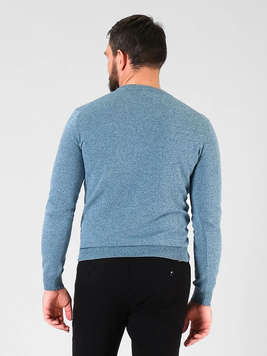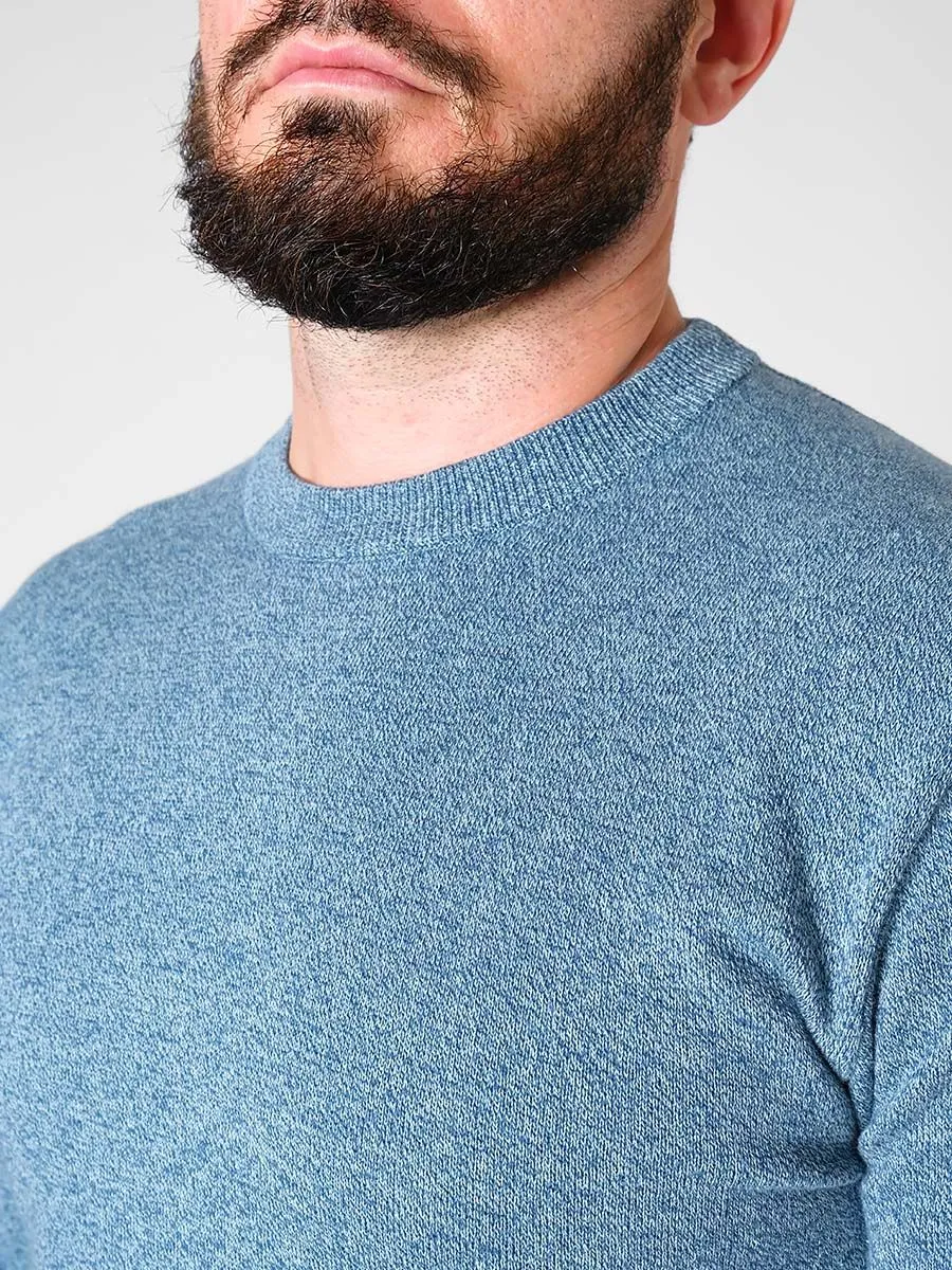Мужской вязаный джемпер голубого цвета. Круглый ворот. Такой джемпер отлично подходит для повседневной носки в прохладные дни. Состав: 100% хлопок.