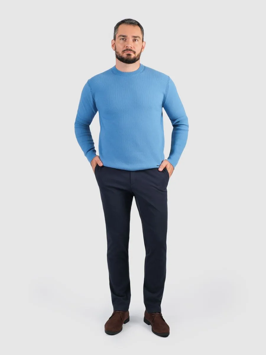 Джемпер в голубом оттенке олицетворяет элегантность и утонченность, добавляя модный штрих в любой гардероб. Мелкий жаккард по всему изделию придает текстуре глубину и изящество, создавая визуальное интересное полотно, которое притягивает взгляд. Подобные детали не только украшают изделие, но и свидетельствуют о высоком уровне мастерства, вложенном в его изготовление.