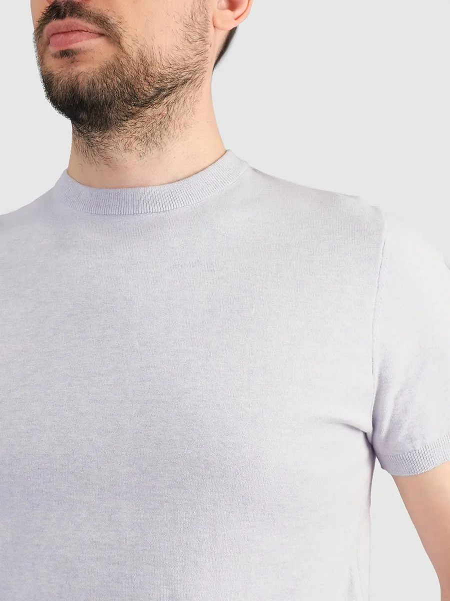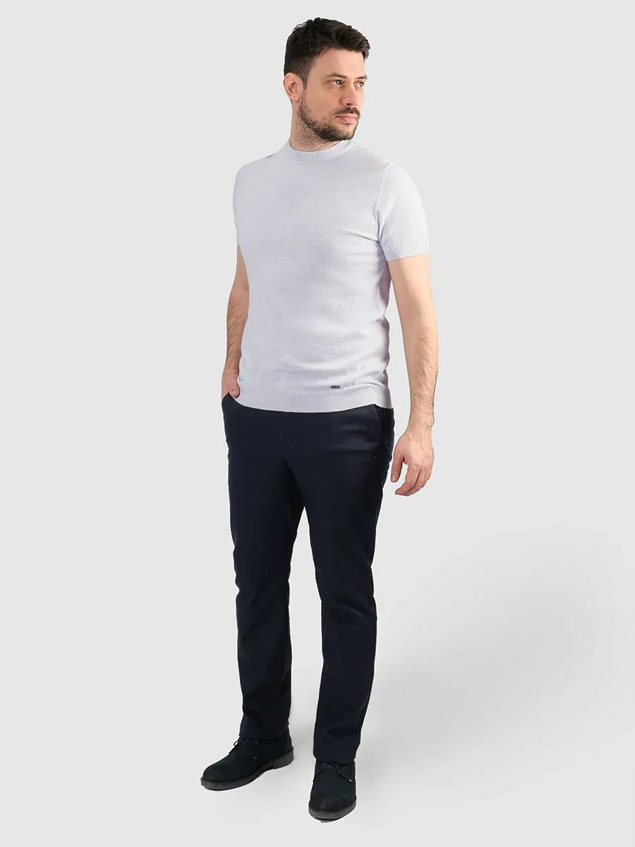 Мужская трикотажная футболка с короткими рукавами, вырез круглый, выполнена в нежном небесно-голубом цвете с меланжевым эффектом.