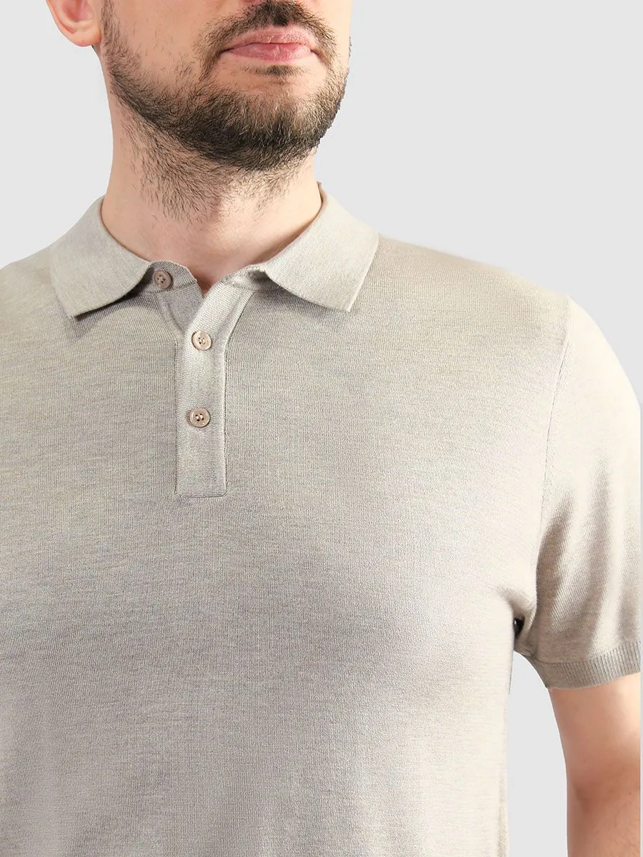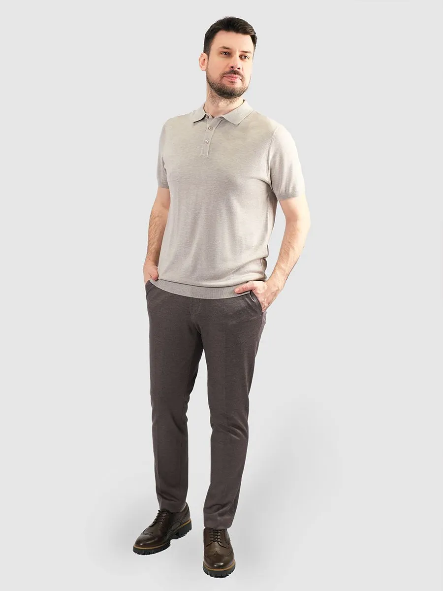 Вязаное мужское поло – это воплощение утонченного стиля и комфорта, созданное для современного мужчины, ценящего качество и элегантность в каждой детали. Искусно связанное из высококачественной пряжи, это поло сочетает в себе практичность и изысканность, делая его незаменимым элементом гардероба.Состав поло, включающий 50% вискозы, 44% акрила и 6% шерсти, тщательно подобран для достижения идеального баланса между мягкостью, долговечностью и теплоизоляцией. Бежевый меланж, выбранный для этого поло, является универсальным и элегантным решением. Этот оттенок легко сочетается с различными цветами и стилями, позволяя создавать разнообразные образы. Отсутствие жаккардового узора подчеркивает минималистичный и современный дизайн поло, делая акцент на его текстуре и качестве вязки.Застежка на пуговицы – это классический элемент, придающий поло завершенный и аккуратный вид. Пуговицы, подобранные в тон основной ткани, гармонично дополняют дизайн и обеспечивают удобство в использовании. Застежка позволяет регулировать вырез поло, адаптируя его к различным погодным условиям и личным предпочтениям.