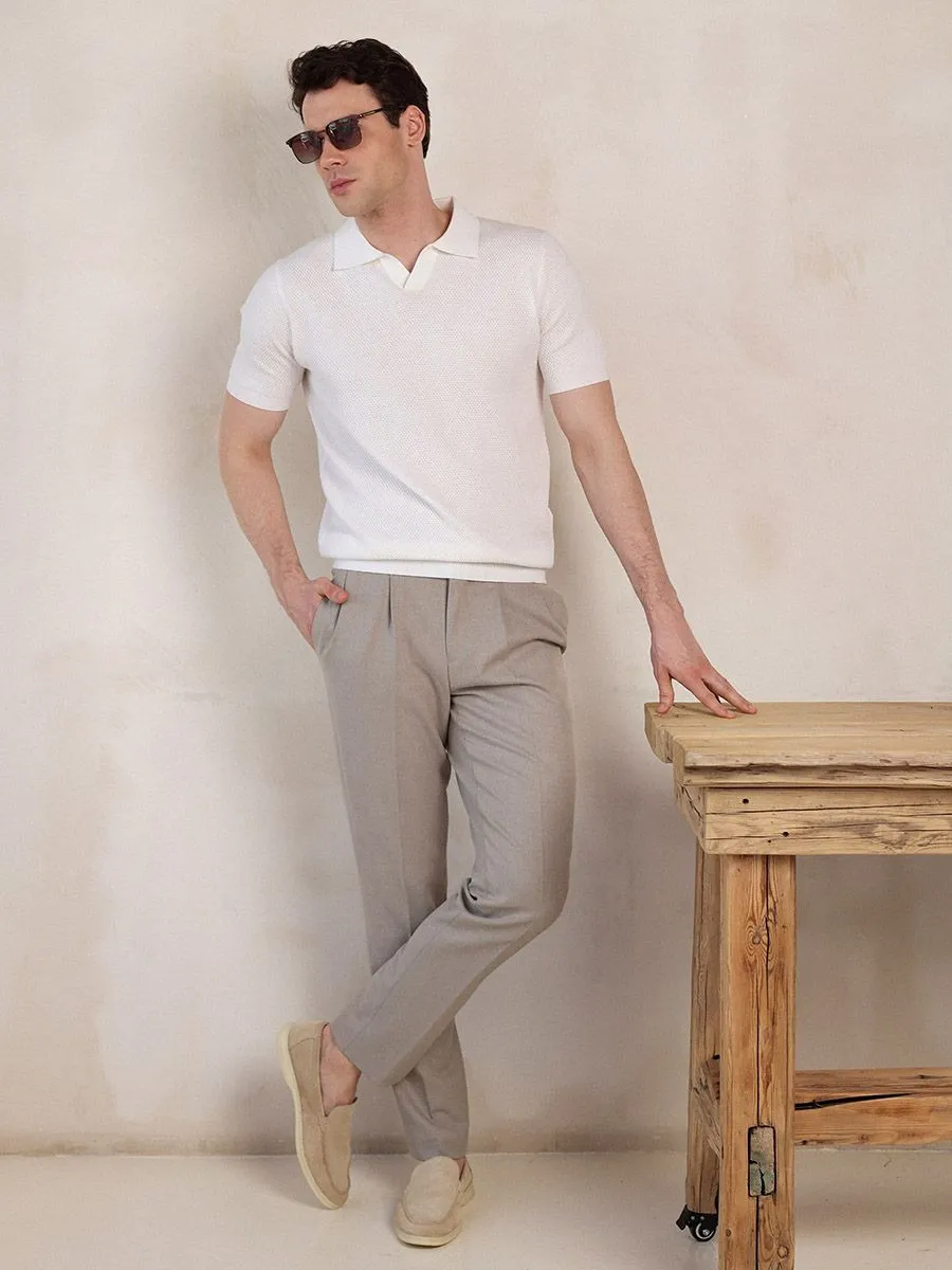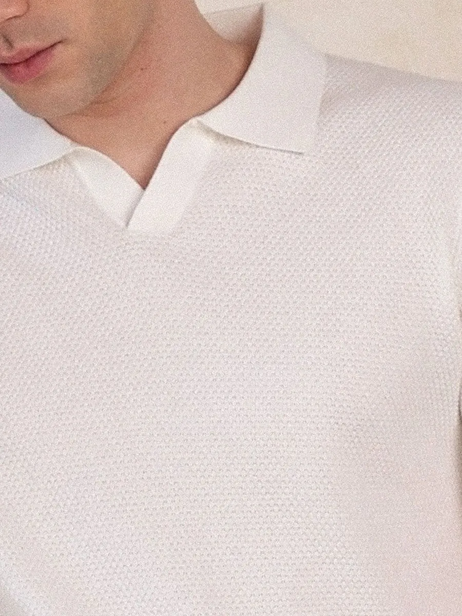 Джемпер в стиле поло с коротким рукавом станет отличным дополнением к вашему гардеробу, сочетая в себе стиль, комфорт и практичность. Он подчеркнет вашу индивидуальность и позволит чувствовать себя уверенно и комфортно в любой ситуации. Сочетание натурального хлопка и акрила обеспечивает приятное ощущение на коже и долговечность изделия.Мелкий жаккардовый узор «соты» придает изделию изысканность и оригинальность, выделяя его среди обычных джемперов. Этот ненавязчивый, но при этом стильный элемент дизайна добавляет текстуру и глубину, делая образ более интересным и запоминающимся. Белый однотонный цвет позволяет легко сочетать джемпер с джинсами, брюками чинос и даже классическими брюками различных цветов и стилей. Белый цвет всегда выглядит свежо и актуально, подчеркивая ухоженность и хороший вкус своего обладателя.Благодаря короткому рукаву этот джемпер идеально подходит для летнего сезона и теплой погоды. Он обеспечивает свободу движений и комфорт, не сковывая и не перегревая. Это отличный выбор для прогулок по городу и неформальных встреч.