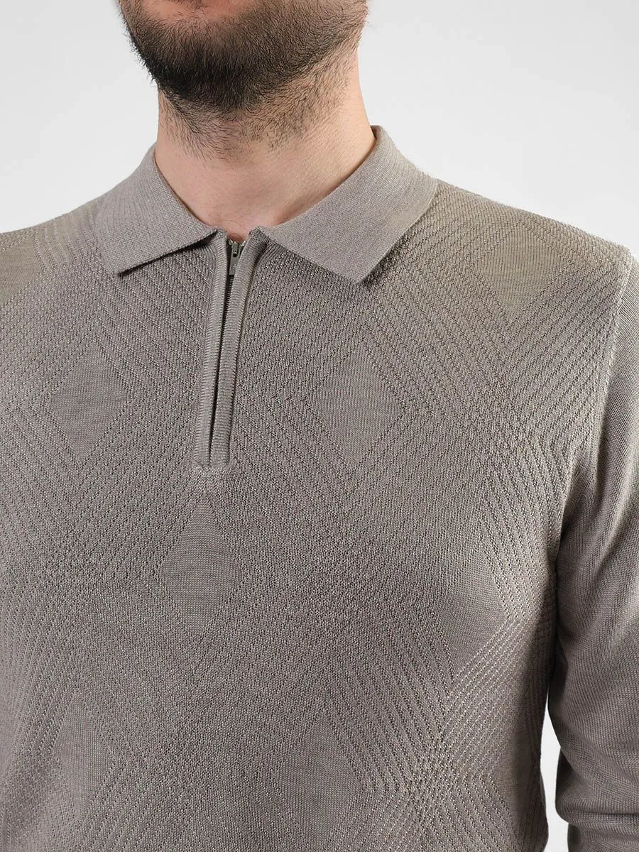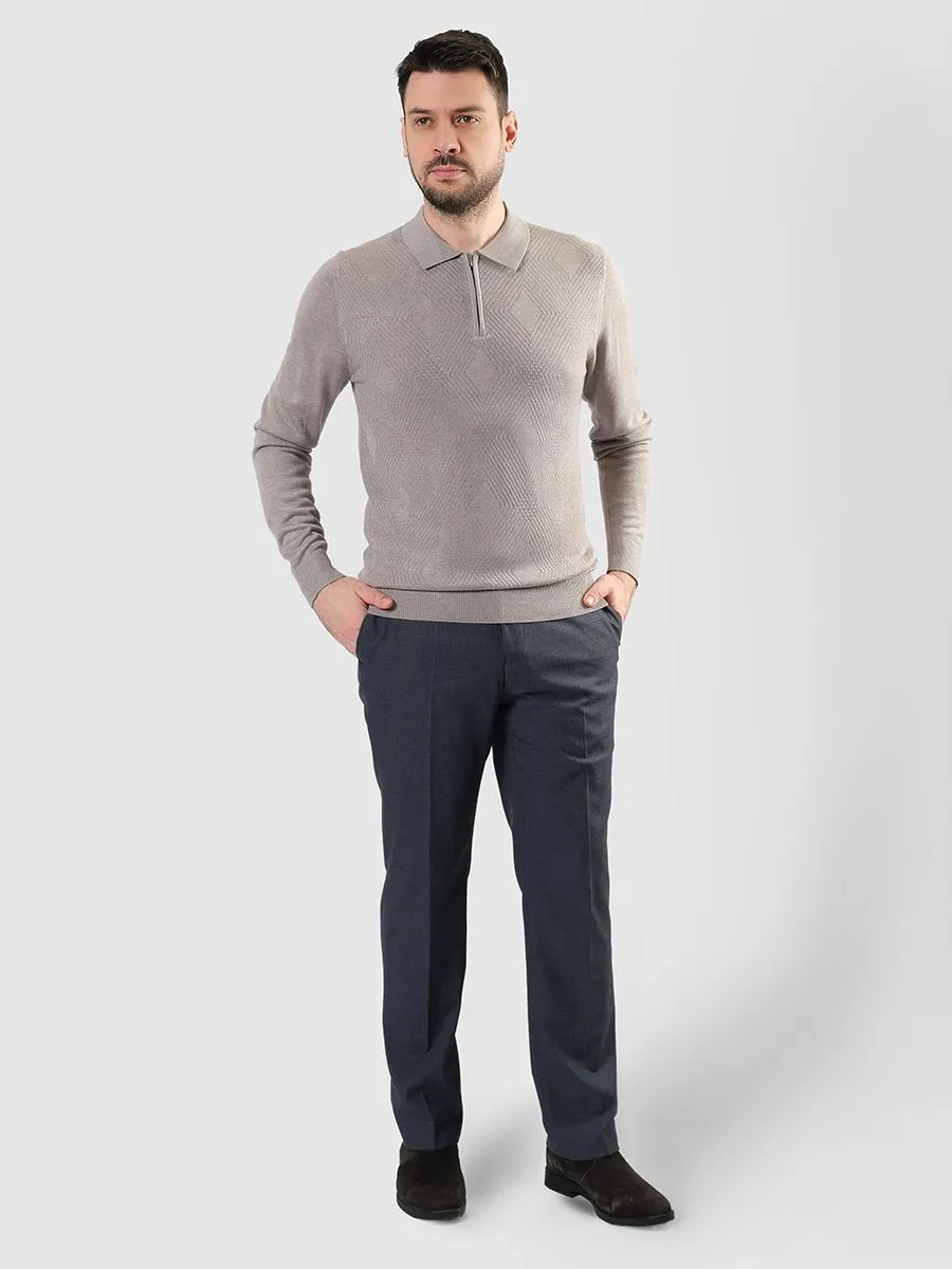 Этот джемпер – прекрасный выбор для тех, кто ценит комфорт и элегантность в повседневной одежде. Сочетание вискозы, акрила и шерсти обеспечивает мягкость, приятную на ощупь текстуру и хорошую теплоизоляцию. Жаккардовый узор «ромбы» на передней части джемпера добавляет ему изысканности и визуального интереса. Геометрический рисунок привносит нотку ретро-стиля, делая образ более запоминающимся и стильным. Этот элемент дизайна позволяет джемперу органично вписываться как в расслабленные, так и в более формальные ансамбли.Застежка на молнии – это не только функциональный элемент, но и стильная деталь, которая позволяет варьировать глубину выреза и создавать разные образы. Расстегнутая молния придаст непринужденности, а застегнутая – более собранный и аккуратный вид.Серо-бежевый меланж – это универсальный и практичный цвет, который легко сочетается с другими оттенками в гардеробе. Он идеально подходит для создания многослойных образов и гармонично смотрится с джинсами, брюками чинос или классическими брюками.Этот джемпер в стиле поло станет незаменимой вещью в мужском гардеробе, обеспечивая комфорт и стиль в любое время года. Он прекрасно подойдет для работы, прогулок или встреч с друзьями, подчеркивая индивидуальность и хороший вкус своего обладателя.