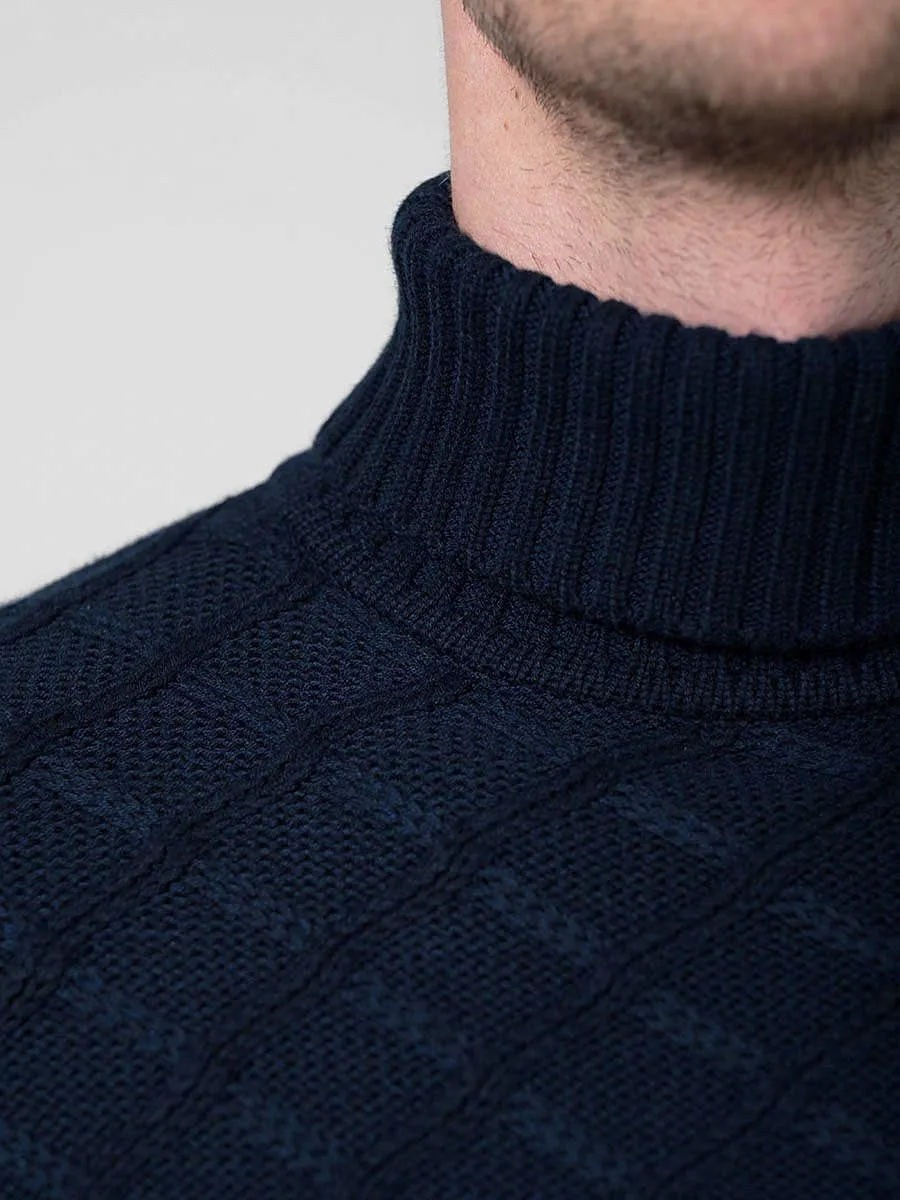 Свитер Peplos придется по вкусу тем, кто не любит носить шарфы: высокий воротник надежно защитит шею от ветра. Объемный жаккард в виде ромбов по переду добавляет оригинальности, а глубокий джинсовый цвет позволит составить много стильных комплектов. Свитер состоит из смешанной пряжи, что наделяет его преимуществами разных материалов. Шерсть добавляет тепла, полиэстер - придает прочность и износостойкость, акрил- облегчает изделие и создает объем, нейлон - гладкость и простоту в уходе.