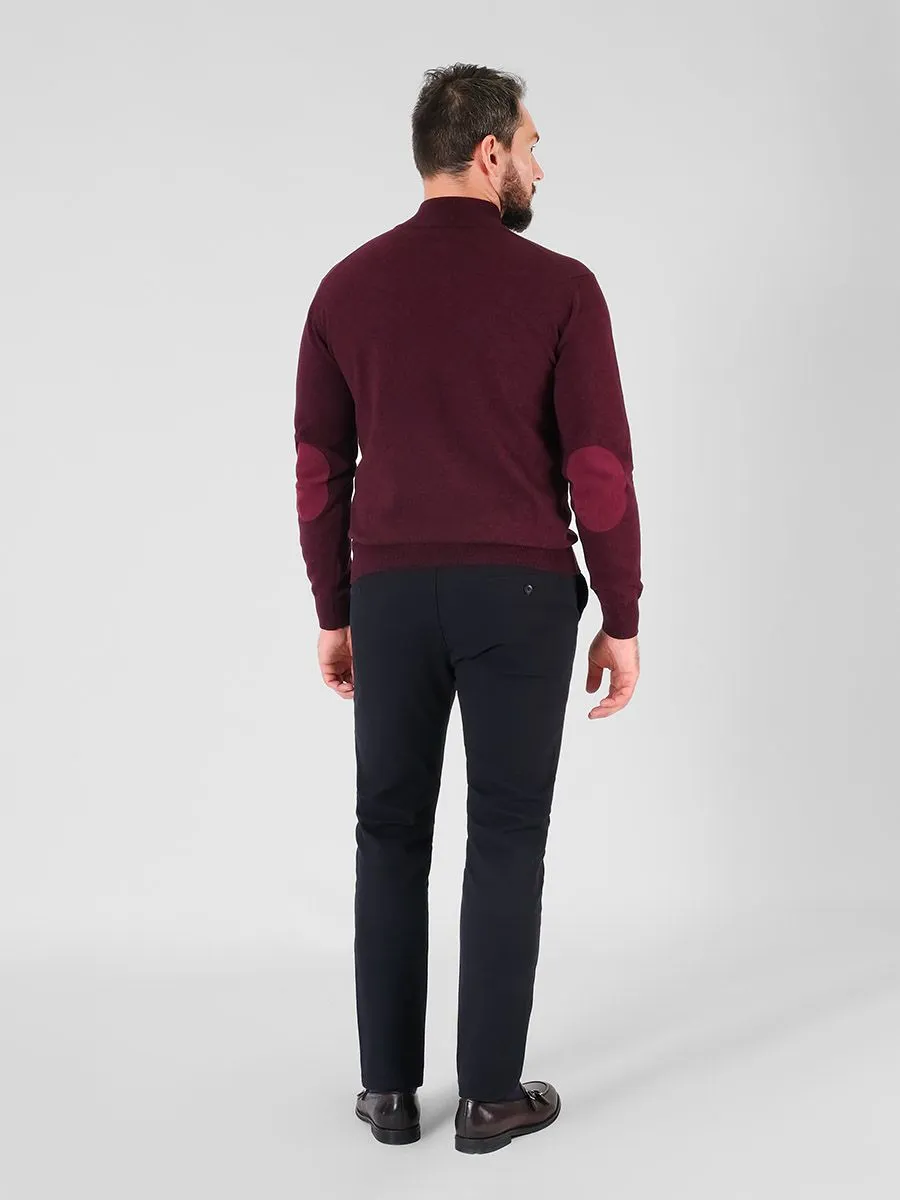 Стильный мужской свитер от Пеплос станет прекрасным пополнением демисезонного гардероба. Отличительными особенностями свитера являются воротник - стойка на молнии и глубокий бордовый цвет. Края рукавов и низ изделия прошит мягкими резинками для более плотного прилегания. На локтях есть специальные вставки для защиты от растяжения и износа, такая же вставка есть на внутренней части воротника. Благодаря мягкости хлопка свитер можно носить первым слоем, или составить сложный образ с рубашкой и пиджаком.