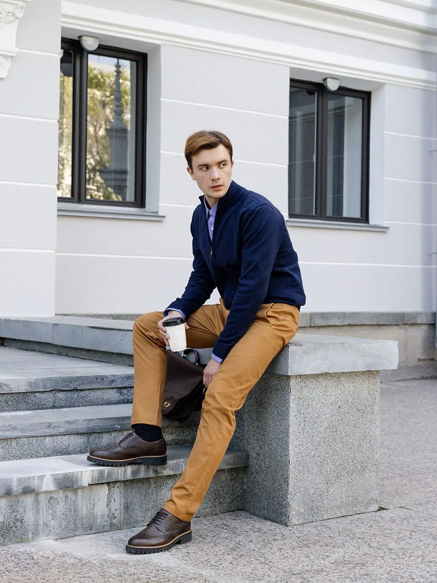 Кардиган на молнии - это практичный и удобный элемент гардероба в холодное время года. Центральная застежка на молнии заканчивается воротником-стойкой на резинке. Резинка также идет по низу изделия и краям рукавов. Кардиган состоит из 100% дышащего хлопка, поэтому требует деликатного ухода и стирки, тогда он прослужит долго и не потеряет форму.