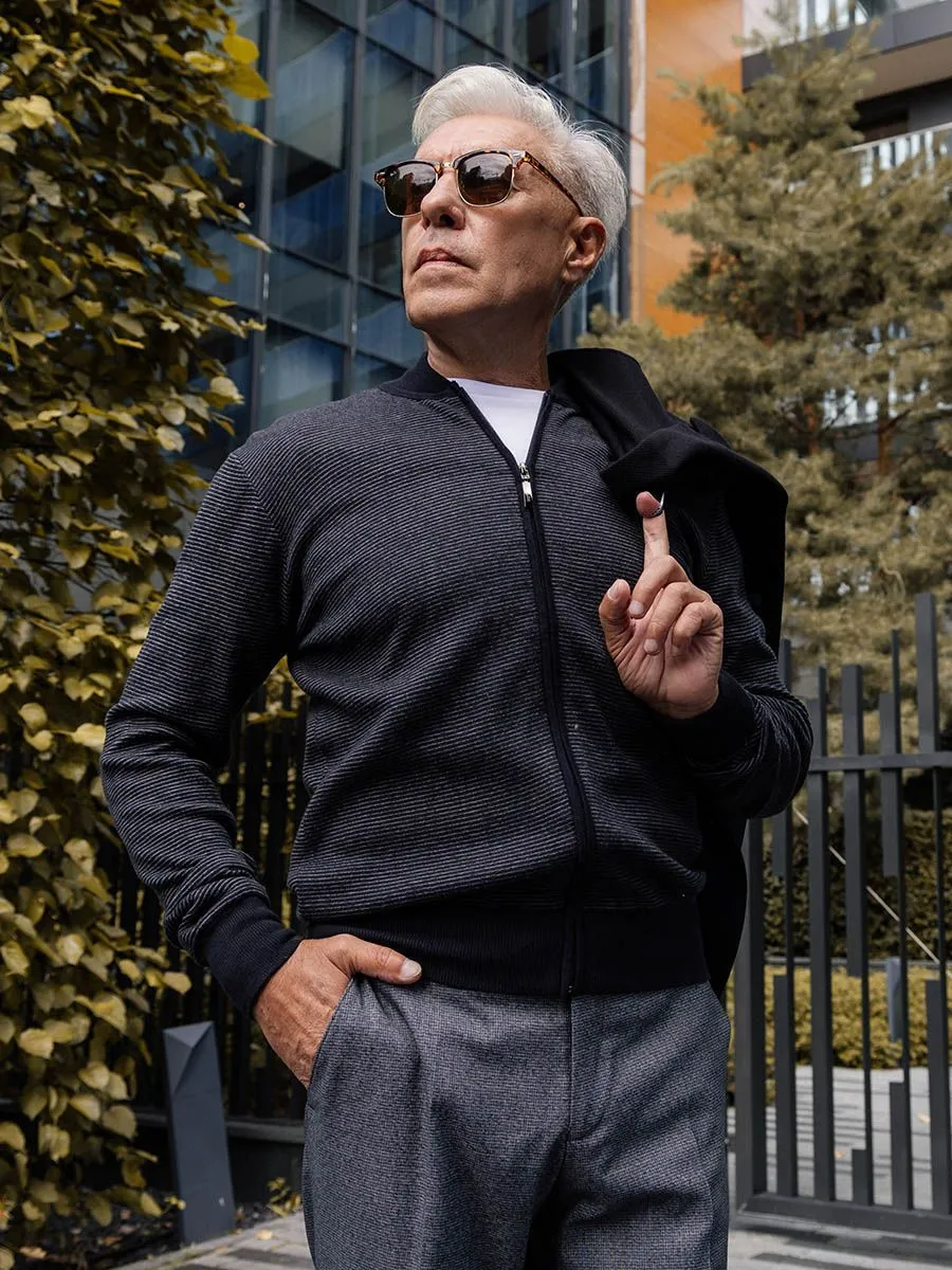 Кардиган мужской Peplos KN24C013 в темно-сером цвете – это стильный и современный элемент гардероба, который идеально подходит для создания комфортных образов в холодное время года. Изготовленный из 100% хлопка, он обеспечивает отличную воздухопроницаемость и комфорт при носке. Модель с 12gg и воротом полу-стойкой придает кардигану элегантный вид, а дополнительная отделка на молнии добавляет практичности и современности. Полосатый дизайн делает его универсальным для сочетания с различной одеждой. Этот кардиган станет отличным выбором для повседневной носки, работы или отдыха.