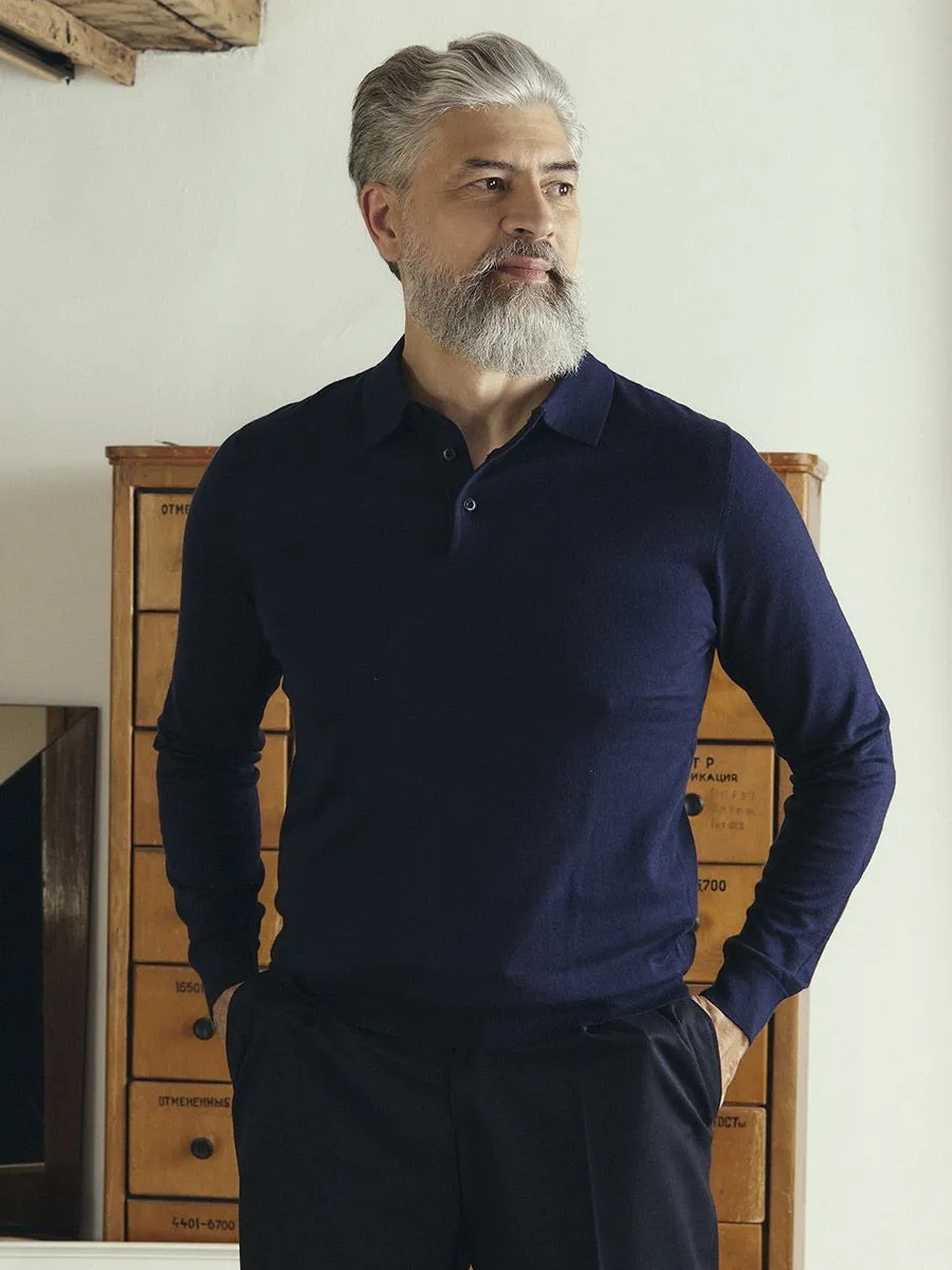 Изысканная мужская трикотажная рубашка темно-синего оттенка – воплощение комфорта и стиля. Идеальное сочетание хлопка (55%) и акрила (45%) обеспечивает мягкость, воздухопроницаемость и долговечность. Прекрасный выбор для создания непринужденного, но элегантного образа.