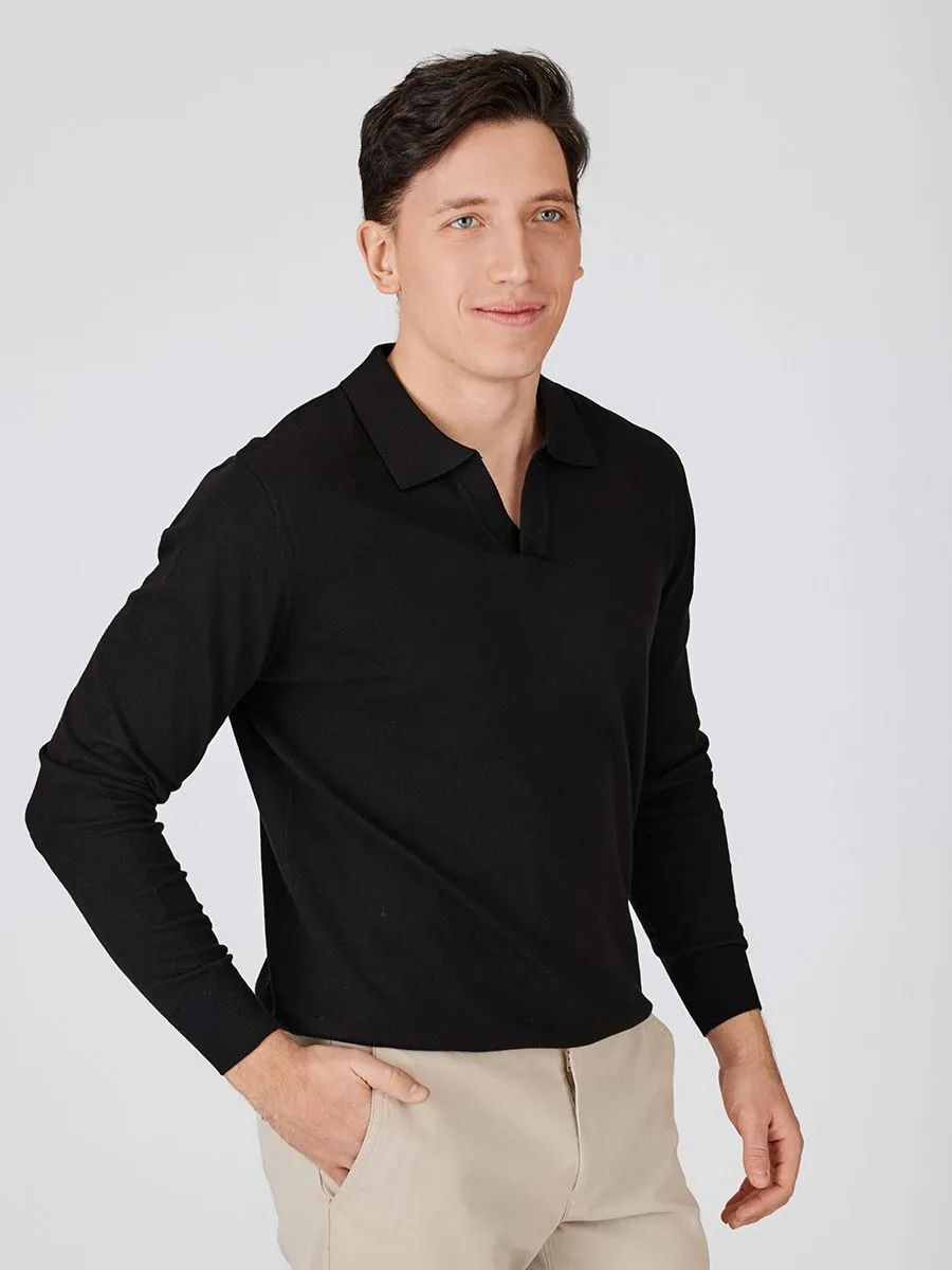 Трикотажная рубашка с длинным рукаовм в черном цвете выполнена в лаконичном дизайне без декоративных узоров. Её сбалансированный состав из натурального хлопка и практичного акрила обеспечивает повседневный комфорт, сохраняя форму после многих стирок. Мягкое эластичное полотно приятно к телу и подходит для ежедневной носки. Эта модель станет универсальной основой гардероба, идеально сочетаясь с джинсами, чинóсами или даже более строгими брюками.