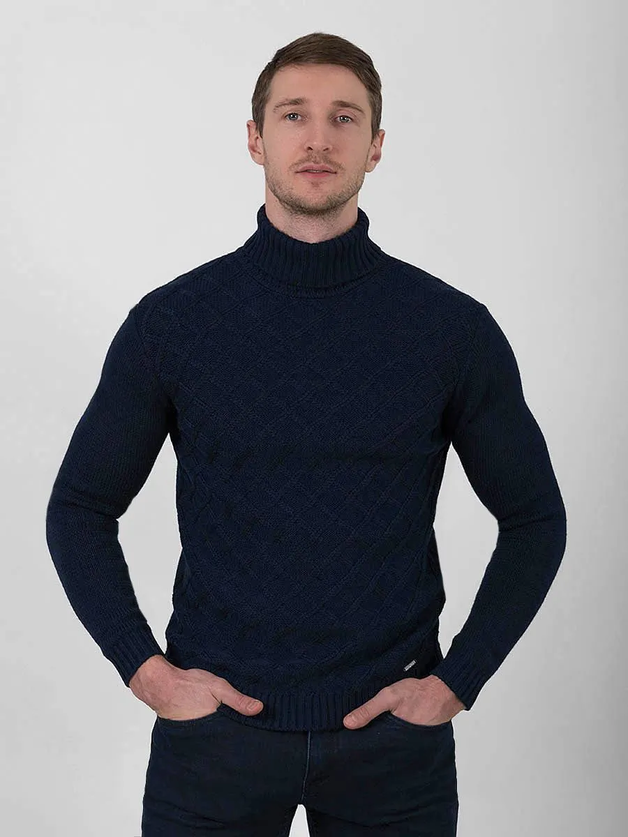 Свитер Peplos придется по вкусу тем, кто не любит носить шарфы: высокий воротник надежно защитит шею от ветра. Объемный жаккард в виде ромбов по переду добавляет оригинальности, а глубокий джинсовый цвет позволит составить много стильных комплектов. Свитер состоит из смешанной пряжи, что наделяет его преимуществами разных материалов. Шерсть добавляет тепла, полиэстер - придает прочность и износостойкость, акрил- облегчает изделие и создает объем, нейлон - гладкость и простоту в уходе.