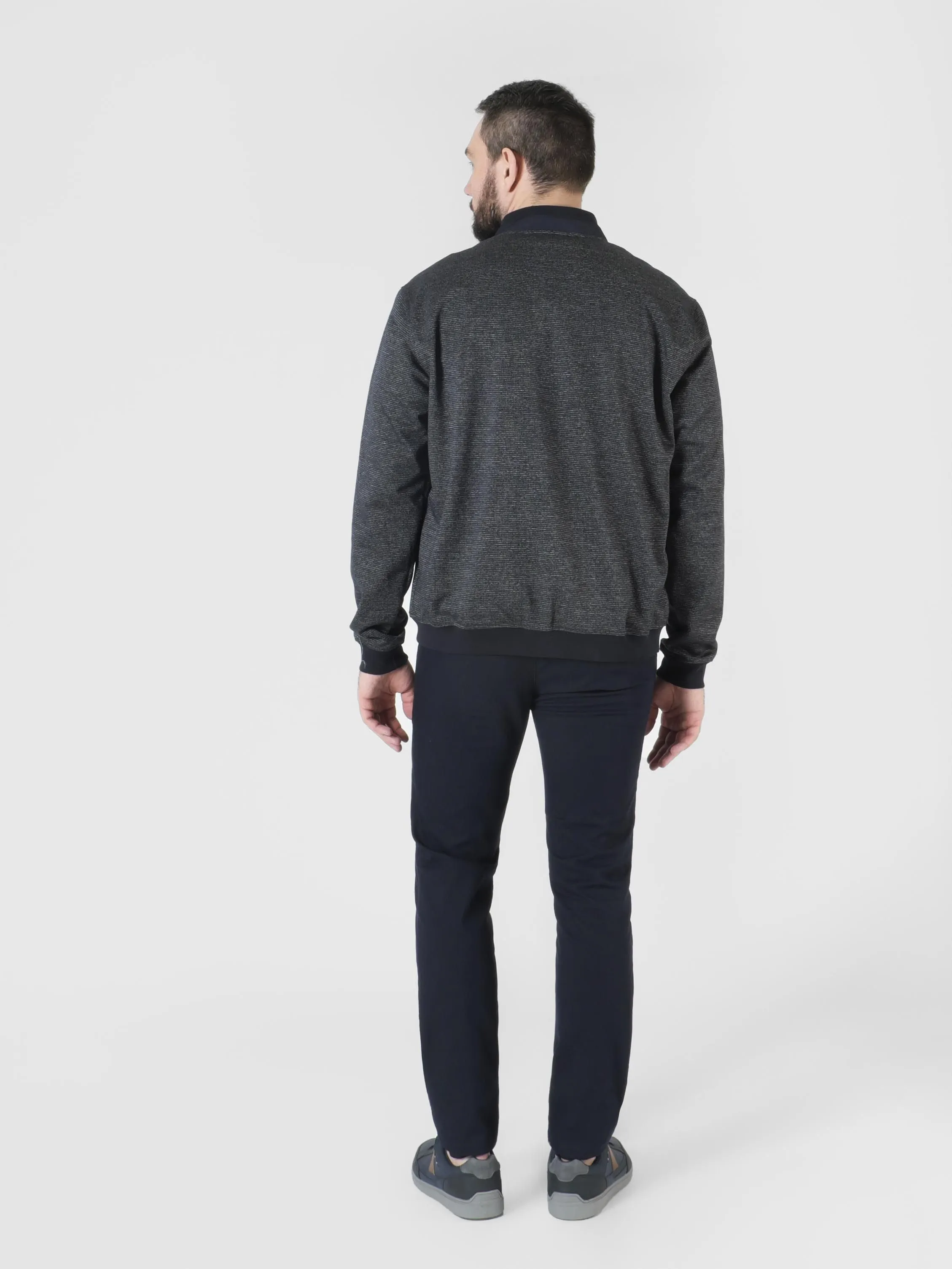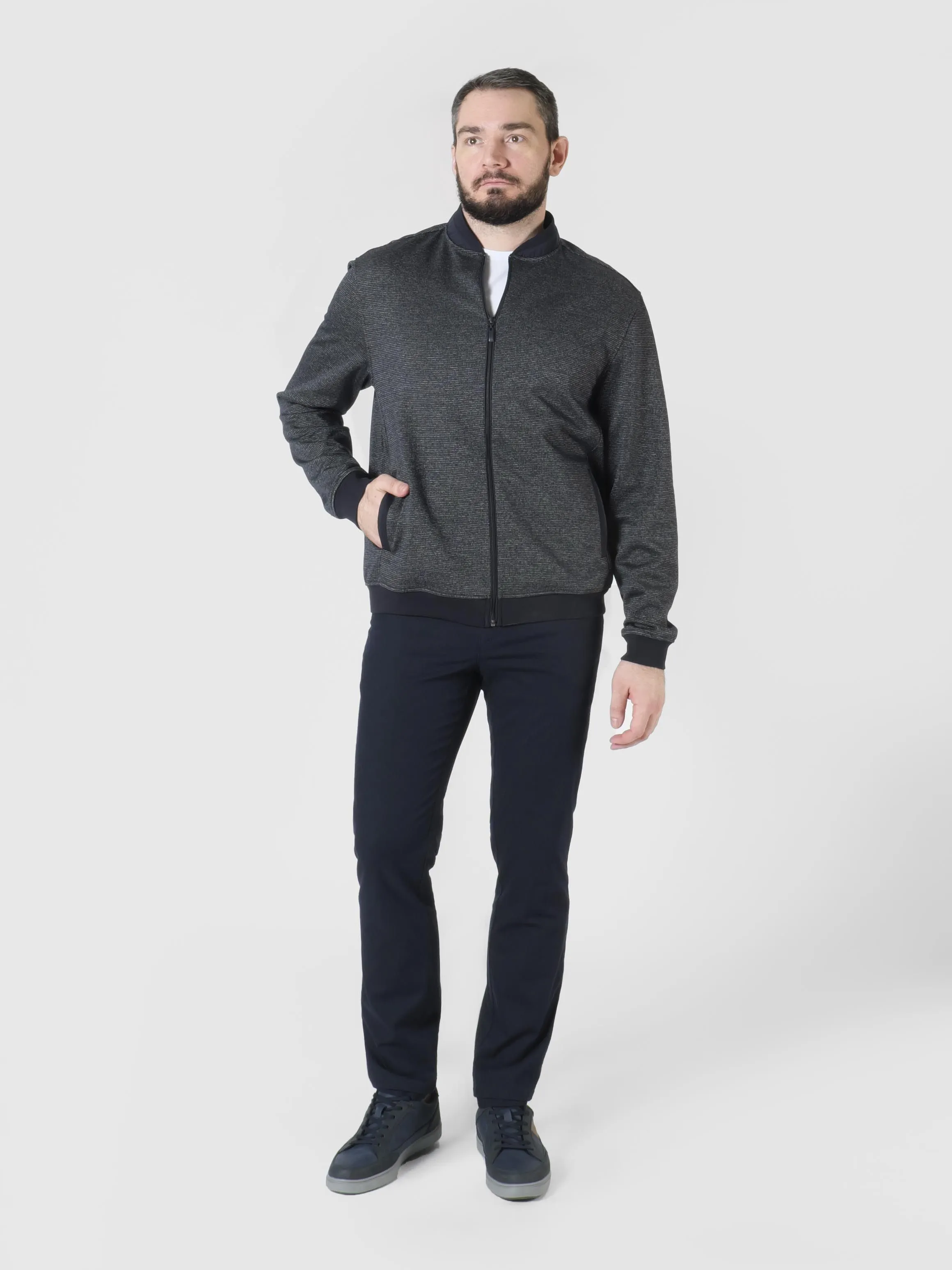 Темно-серая мужская толстовка-бомбер изготовлена из качественного трикотажа, состоящего на 70% из хлопка. Эта модель толстовки отличается своей простотой и элегантностью, идеально подходящая для стильных и современных мужчин. Воротник-стойка и два боковых кармана, выполненные из курточной ткани, стильные молнии на толстовке, изготовленные из основной ткани - все это создает единый изящний образ . Манжеты и пояс толстовки оснащены мягкой резинкой, обеспечивая дополнительный комфорт. Эта деталь дизайна также помогает регулировать посадку толстовки на фигуре.