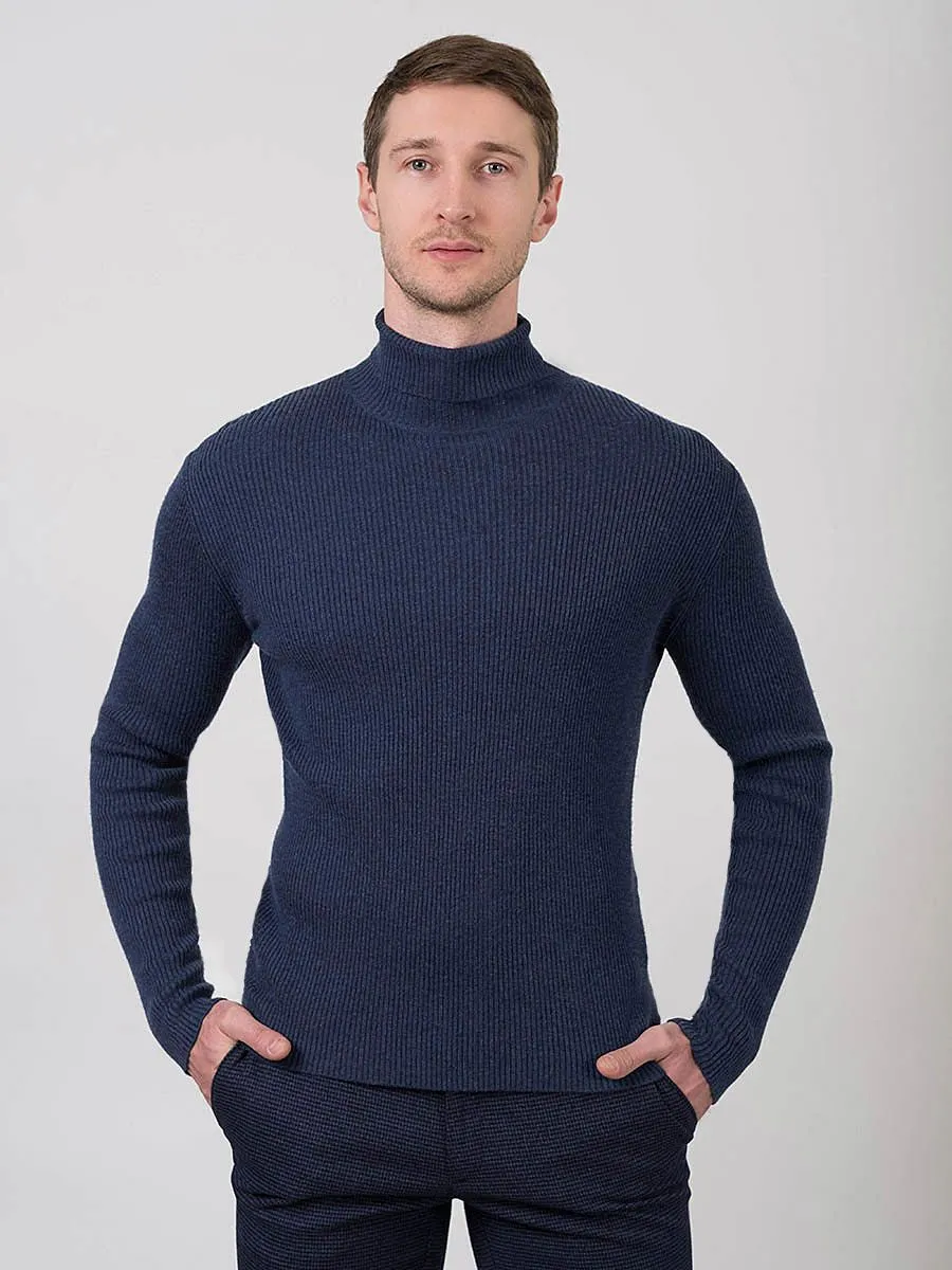Водолазка Peplos изготовлена из ткани под названием "Лапша"-это эластичный трикотаж в продольную полоску, связанный двойной резинкой, благодаря чему она очень хорошо растягивается. Такая водолазка не сковывает движения и вытягивает силуэт. Синий джинсовый цвет водолазки позволит составить множество комплектов-с брюками, джинсами, пиджаками и куртками. Хранить вещи из лапши рекомендуется на полках.