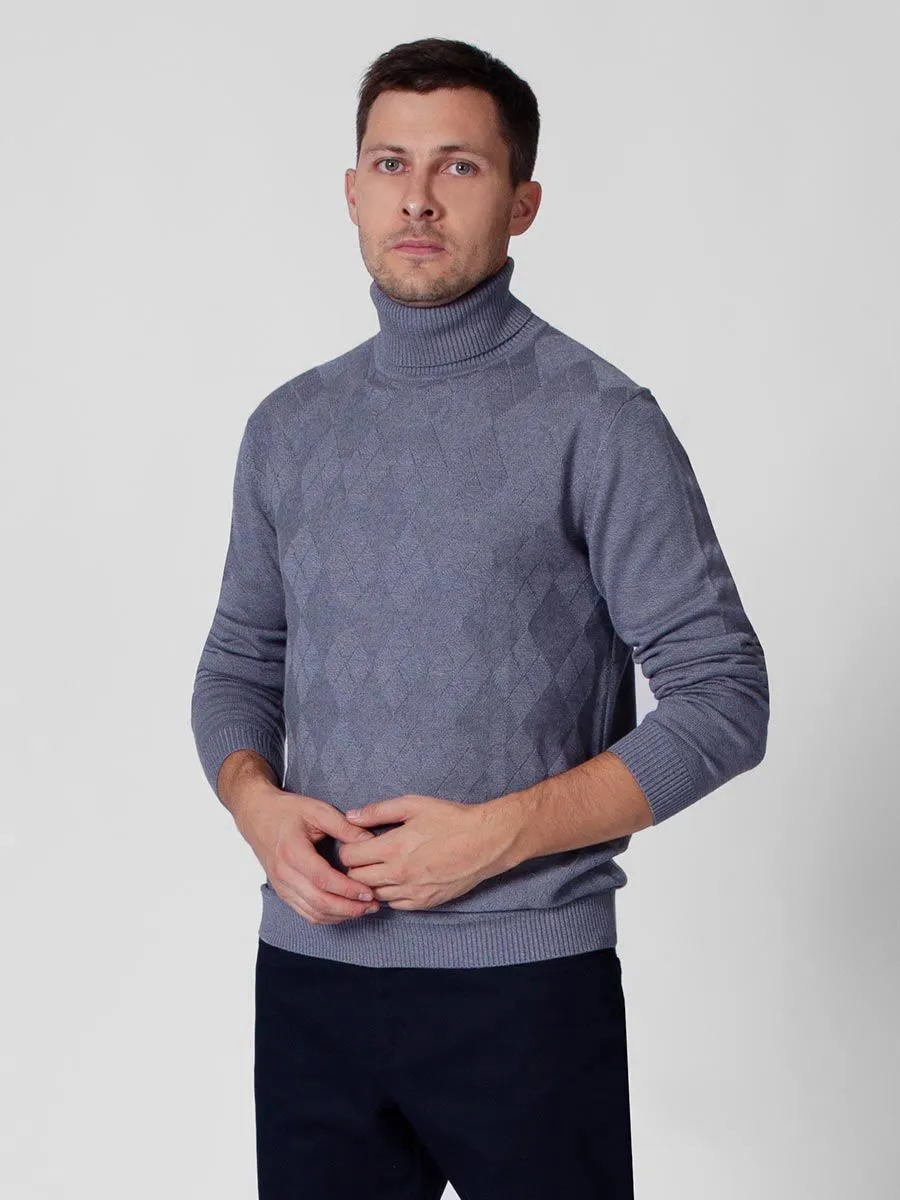В коллекции Peplos осень-зима появилась водолазка с отгибающимся воротом приятного серо-голубого цвета. Данная водолазка отличается жаккардовым рисунком в виде ромбов по переду. Такая вещь отлично смотрится как самостоятельный элемент гардероба, например, с джинсами, так и в паре с пиджком или костюмом. В составе изделия содержится 55% вискозы, 25 нейлона и 20% хлопока.
