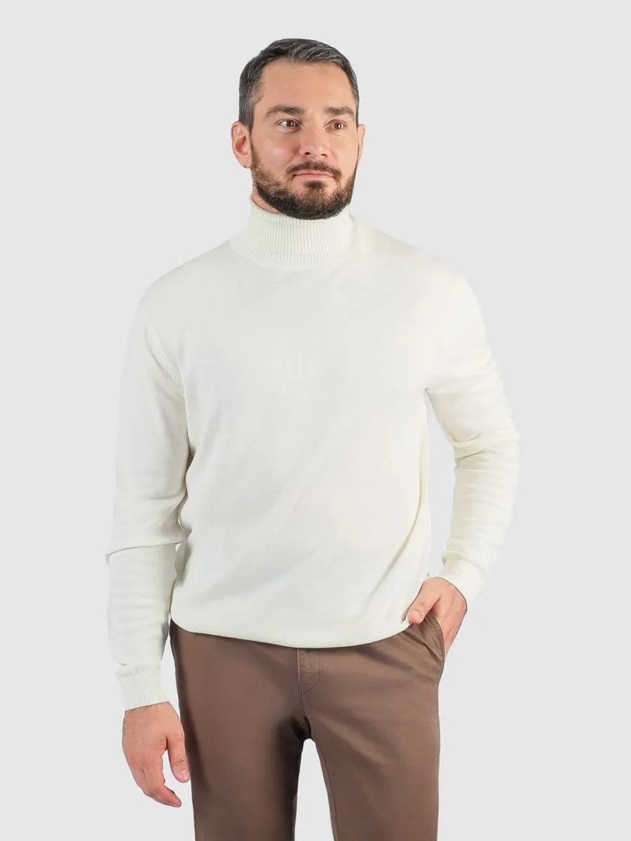 Мужская водолазка в светлом молочном оттенке. Состав 55% вискоза, 25% нейлон, 20% хлопок.