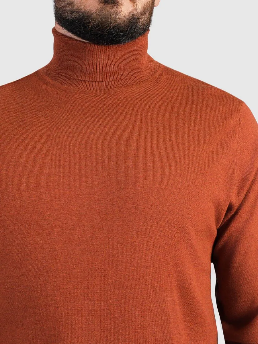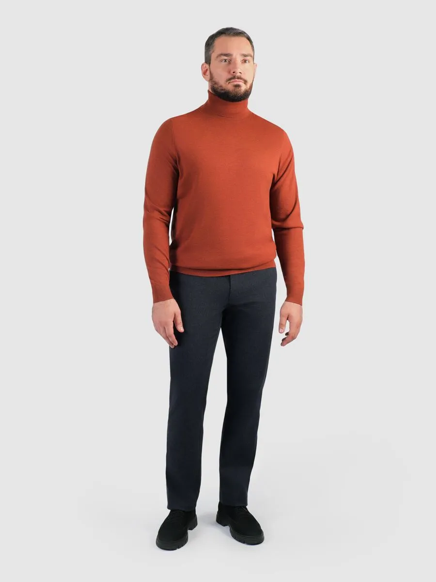 Мужская водолазка в яром терракотовом цвете. Терракот достаточно активный и яркий цвет, но его можно очень удачно встроить в комплекты и он станет «изюминкой» образов.Терракотовый цвет великолепно сочетается с множеством оттенков, включая темно-синий, коричневый, серый и даже черный. Добавьте к этому комбо стильные брюки и классический пиджак, и вы получите безупречный офисный look. Для более расслабленного образа выберите джинсы и удобные кроссовки. Этот цвет привлекает внимание, но при этом не выглядит слишком броско, что делает его идеальным для тех, кто хочет выделяться, но не быть слишком эксцентричным. Водолазка из высококачественного материала, она мягкая на ощупь и прекрасно сохраняет тепло, что делает её идеальной для прохладных дней. Станьте центром внимания с этим модным и элегантным элементом гардероба!