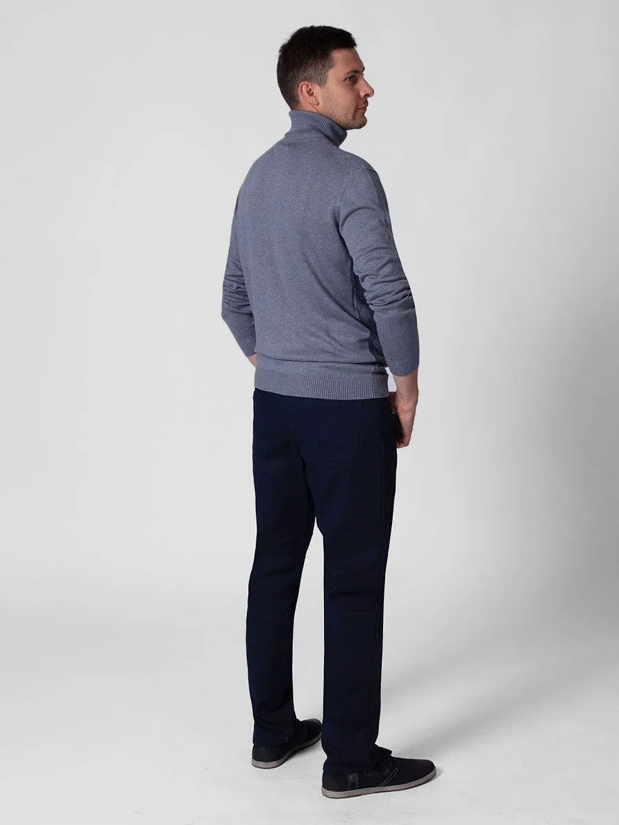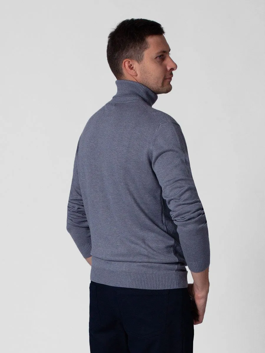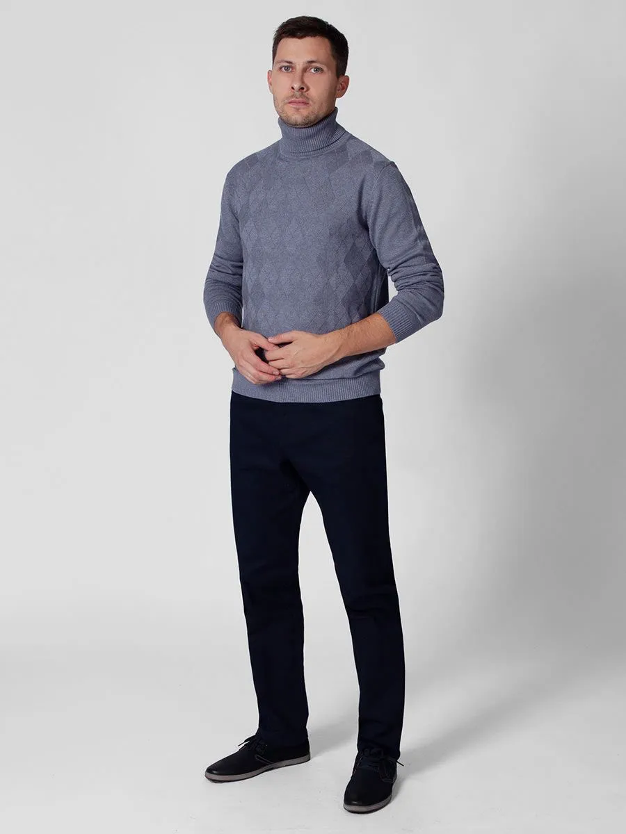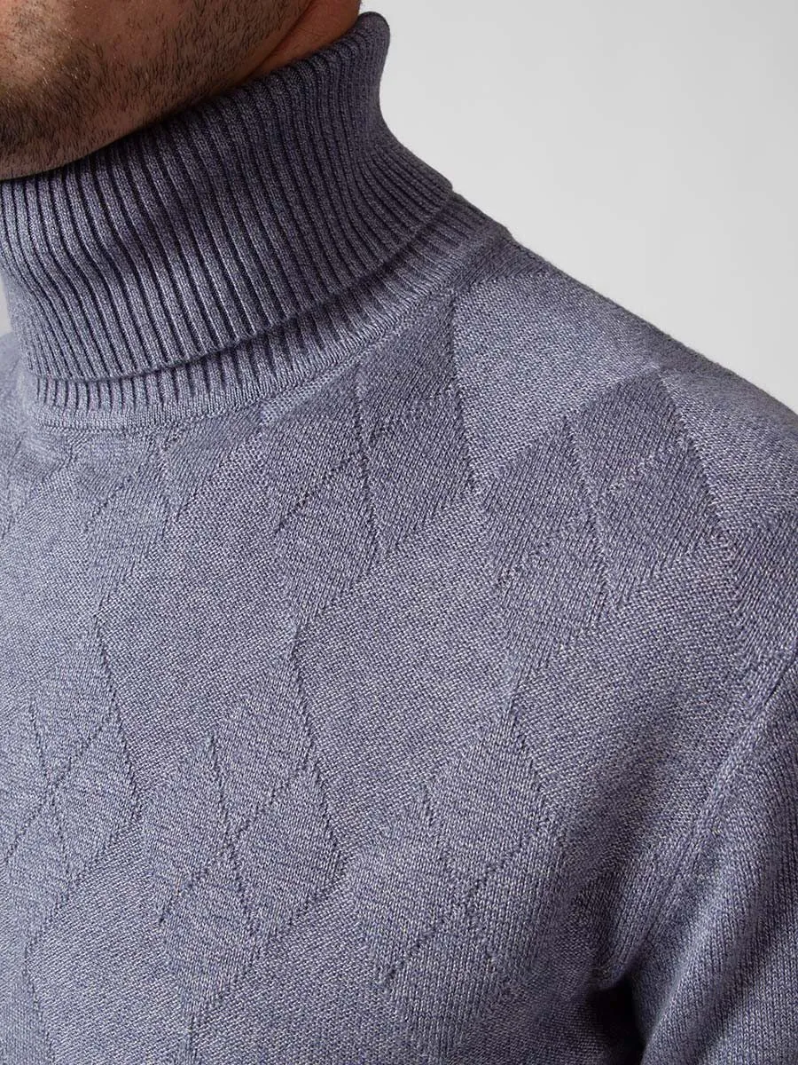 В коллекции Peplos осень-зима появилась водолазка с отгибающимся воротом приятного серо-голубого цвета. Данная водолазка отличается жаккардовым рисунком в виде ромбов по переду. Такая вещь отлично смотрится как самостоятельный элемент гардероба, например, с джинсами, так и в паре с пиджком или костюмом. В составе изделия содержится 55% вискозы, 25 нейлона и 20% хлопока.