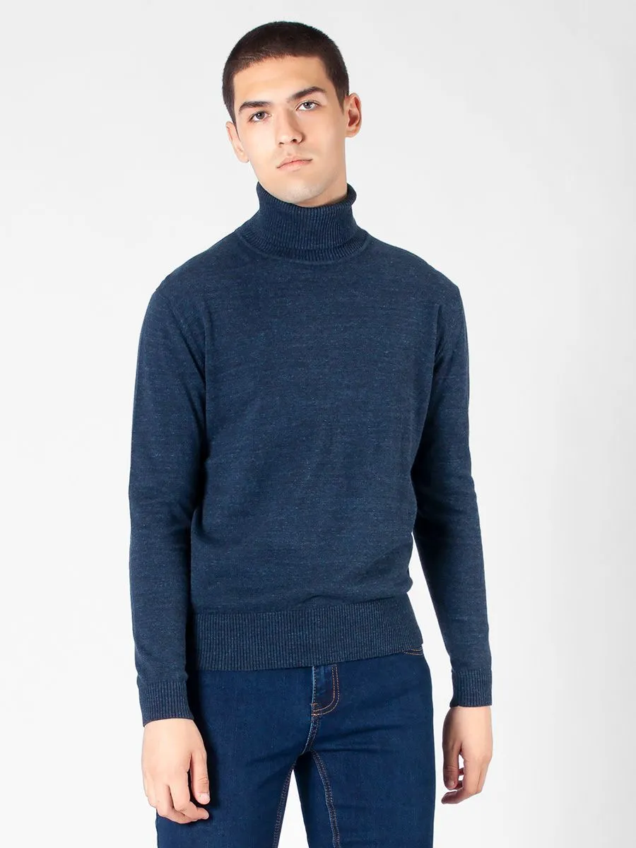 Стильная мужская водолазка Peplos выполнена в универсальном синем цвете из меланжевой ткани. Этот элемент гардероба подходит для различных ситуаций: офисные будни, комфортный отдых. Высокий воротник-стойка не вызывает дискомфорта и всегда держит горло в тепле. Материал изделия - 100% натуральный хлопок. В образе присутствуют мужские синие джинсы Peplos J2202-C.