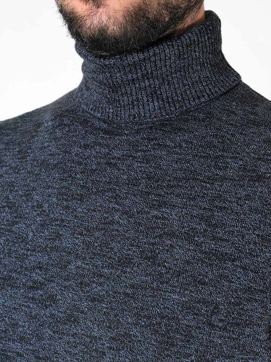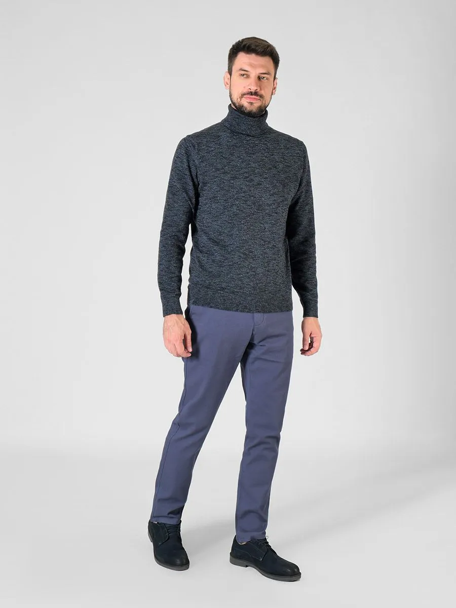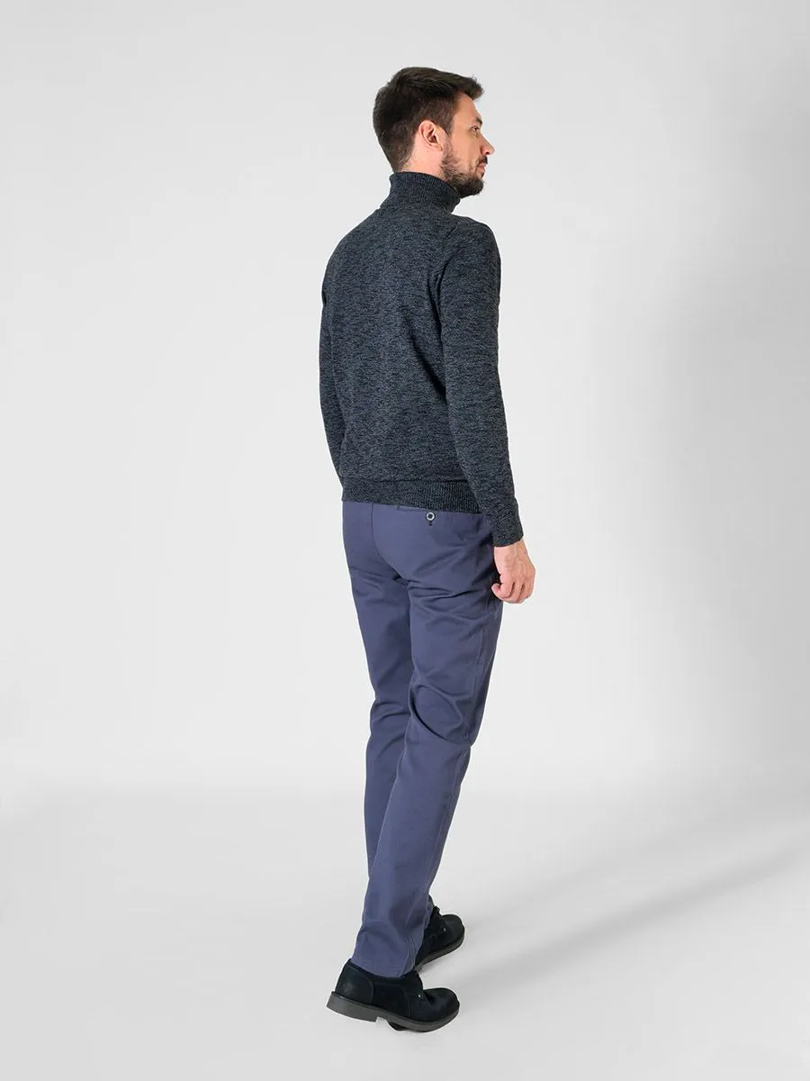 Теплая хлопковая водолазка согреет в холодное время года. Натуральный состав обеспечит долговременный комфорт. Цвет у водолазки сложный из-за меланжевой фактуры, то есть пересечения пряжи различных цветов. Воротник загибается и получается двойной слой, поэтому такой воротник может заменить шарф. Брюки: P2407-SL.