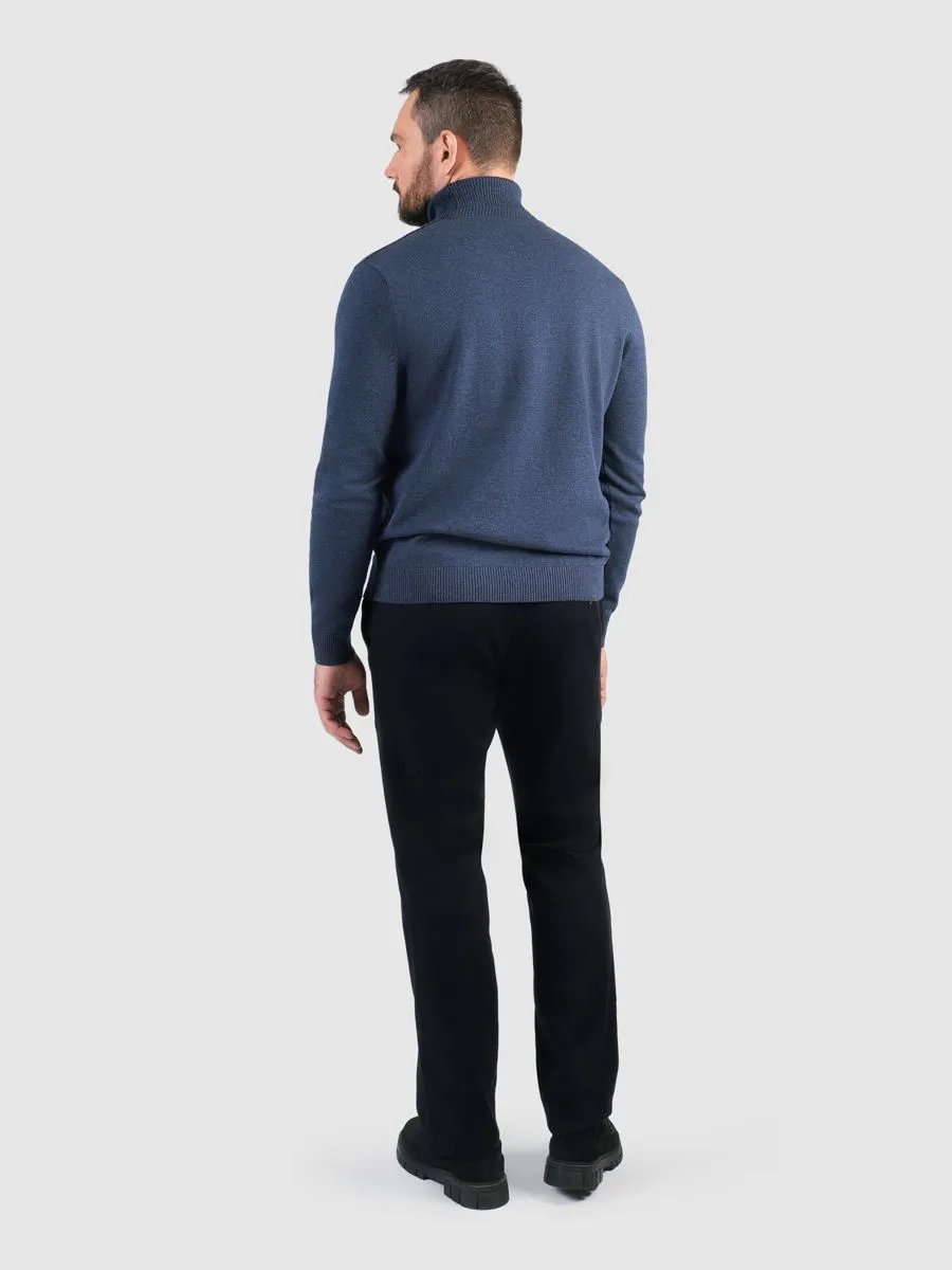 Мужская водолазка с высоким воротником синего «джинсового» цвета, жаккард по верху переда изделия – косы. Состав: 100% хлопок. Эта водолазка идеально подходит для прохладных осенних вечеров и зимних морозов. Её насыщенный цвет добавляет яркость, в то время как мягкий хлопок обеспечивает комфорт и тепло. Водолазка легко сочетается как с деловым костюмом, так и с повседневной одеждой, создавая стильный и элегантный образ. Высокий воротник надежно защищает от ветра, а жаккардовый узор на передней части изделия добавляет оригинальности и изысканности. Независимо от ситуации, эта водолазка станет отличным выбором для любого современного мужчины, ценящего комфорт и стиль в каждом элементе своего гардероба.