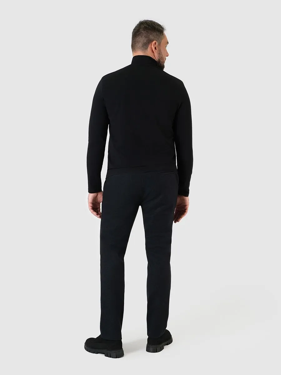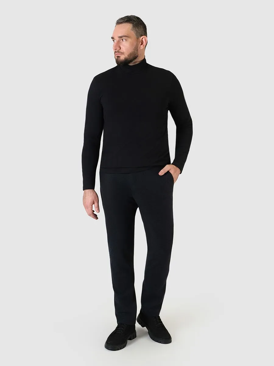 Мужская водолазка на сегодня является одним из базовых элементов одежды. Черный цвет водолазки универсальнен в гардеробе делового мужчины, что позволяет сочетать данный элемент одежды как с классическими брюками, так и с джинсами. Воротник у водолазки средней высоты, поэтому не сдавливает горло, но при этом защищает от ветра. Свободный силуэт изделия обеспечивает аккуратную посадку на любом типе фигуры. Качественный трикотаж из мягкого, натурального хлопка не сковывает движения и прекрасно носится.
