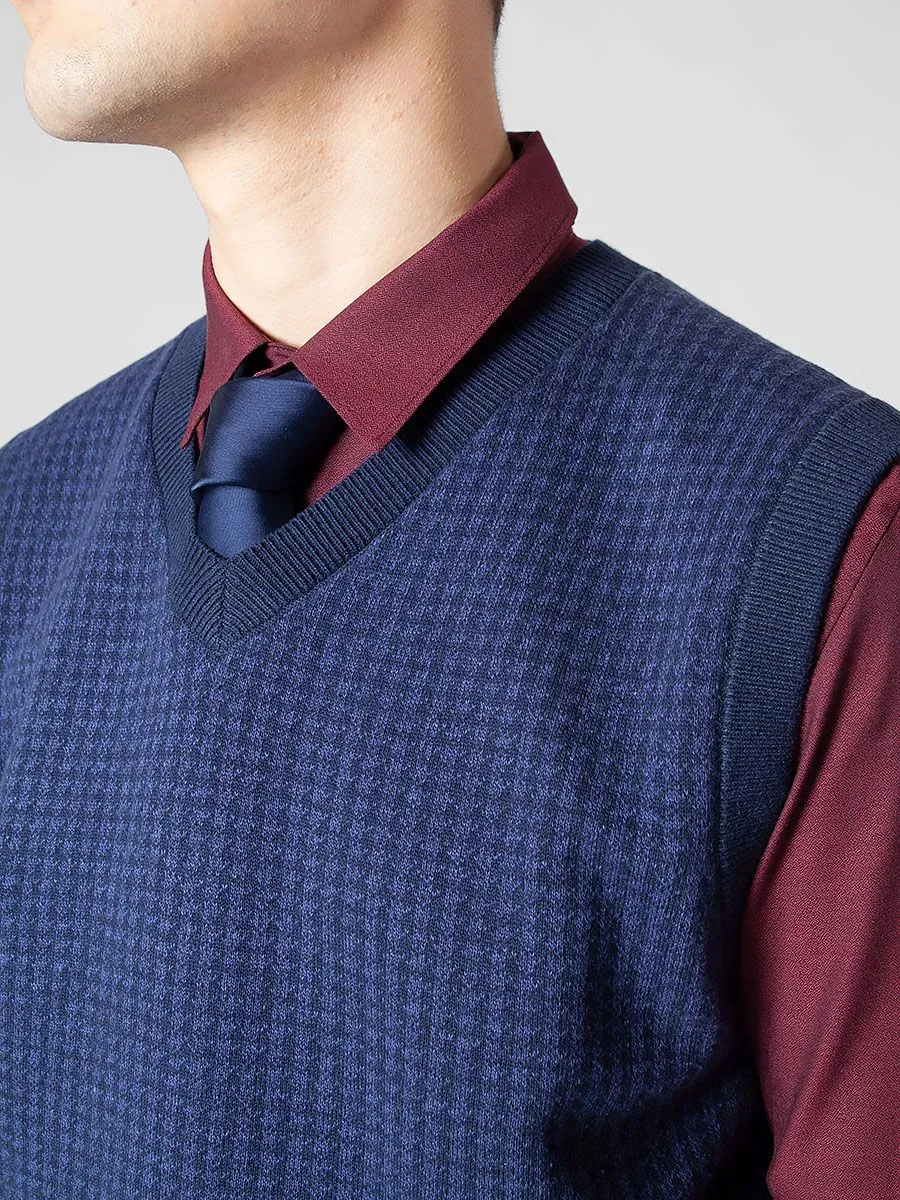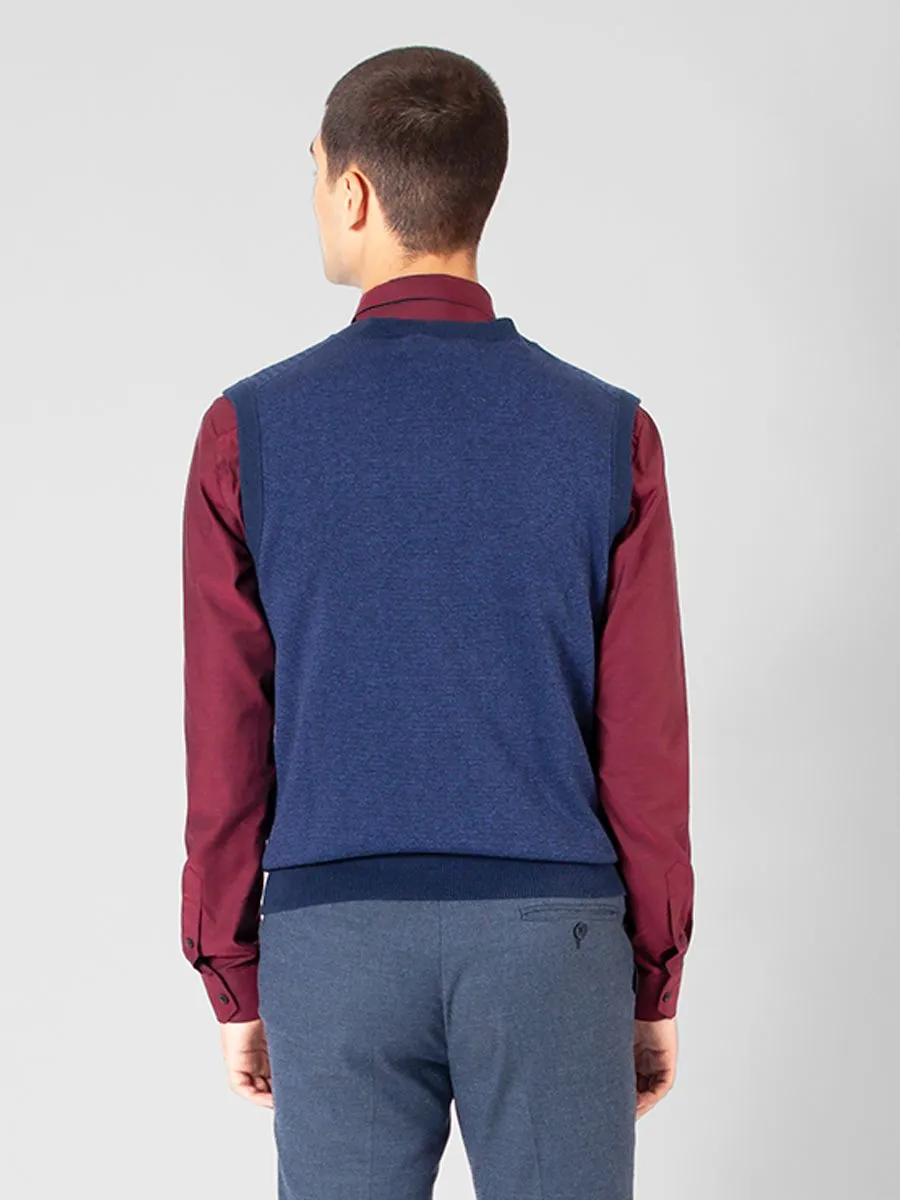 Жилет мужской Peplos KN22V007 в синем цвете с более темными резинками – это стильный и функциональный элемент гардероба, который отлично подходит для создания элегантных и комфортных образов. Изготовленный из 100% хлопка, он обеспечивает приятные ощущения на коже и хорошую воздухопроницаемость. Модель с 12gg и V-образным воротом придает жилету изысканный вид, а мелкий жаккард добавляет оригинальности и текстуры. Этот жилет станет отличным выбором как для повседневной носки, так и для более формальных случаев, легко комбинируясь с рубашками или футболками.