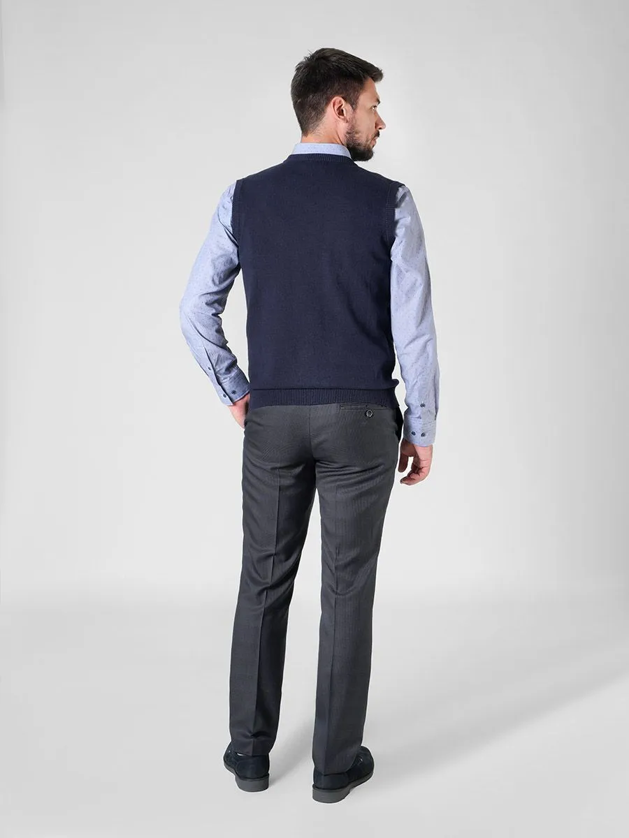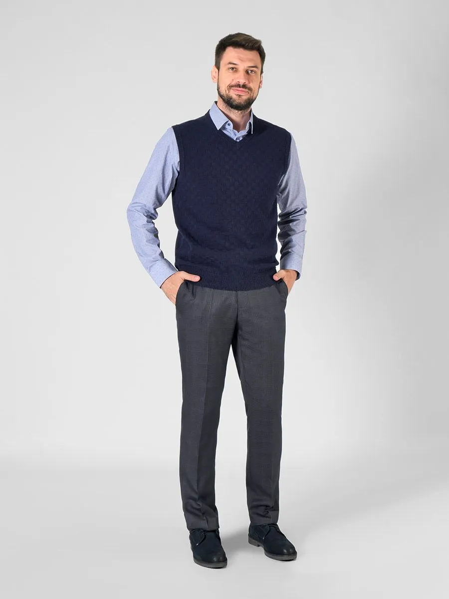 Трикотажный жилет- это универсальный вариант утепления в демисезон. В куртке будет теплее, а в офисе не жарко, чему способствует также натуральный хлопковый состав. Жилет украшен фактурной вязкой спереди, имеет v-образный вырез и эластичную резинку по низу. У жилета расширенная размерная сетка до 124 (62) размера.