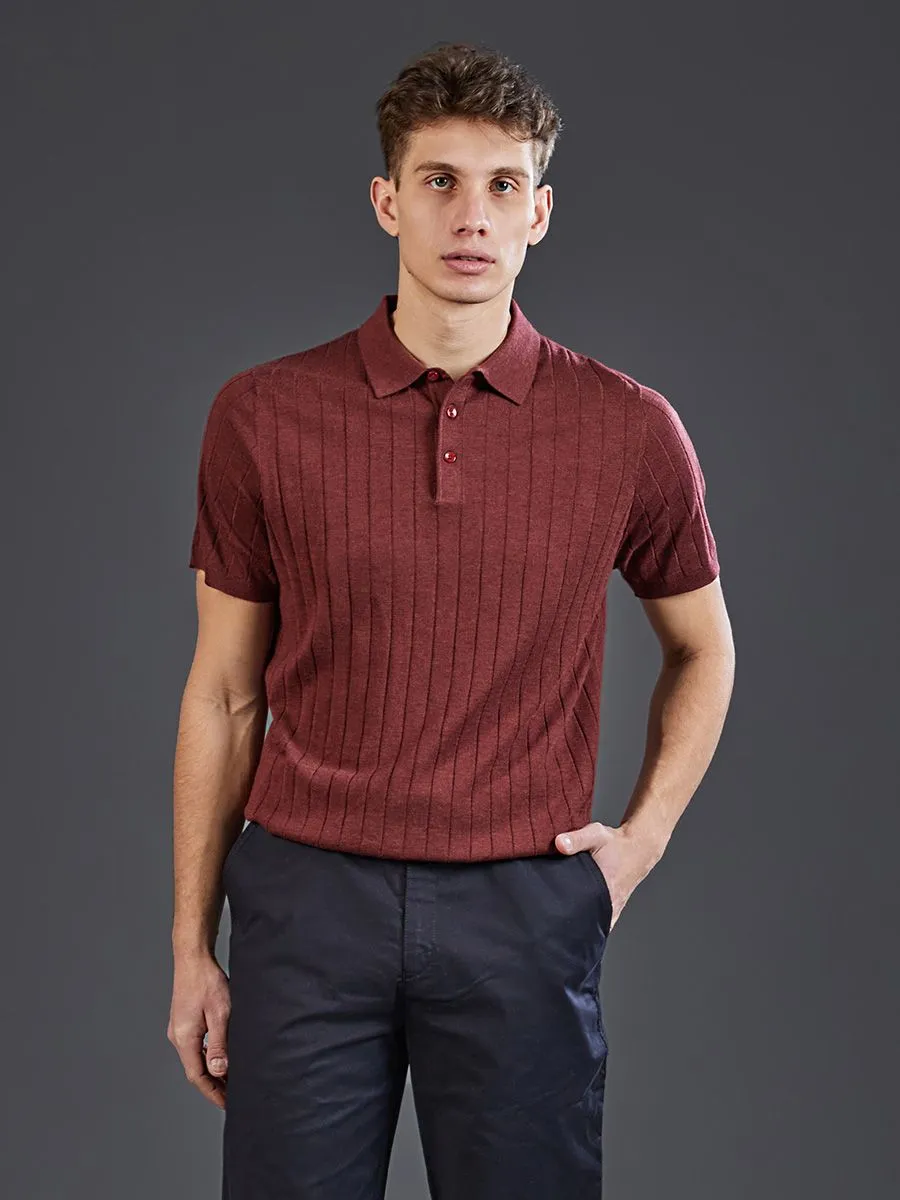 Мужская трикотажная рубашка в насыщенном светло-бордовом цвете. Особенностью модели является классический жаккардовый рисунок «полоска» по переду, добавляющий фактуре визуальный интерес и структурную глубину. Полотно из сбалансированной смеси полиэстера, нейлона, акрила и шерсти обеспечивает прочность, комфорт в носке и сохранение формы. Эта рубашка станет стильным выбором для создания актуальных повседневных образов, сочетая динамичный рисунок с благородным оттенком.