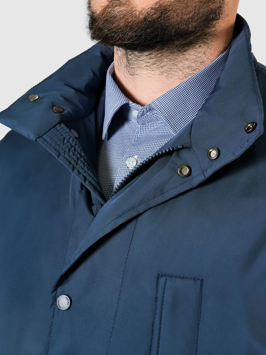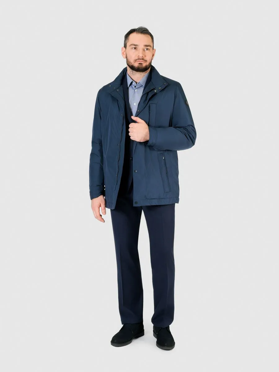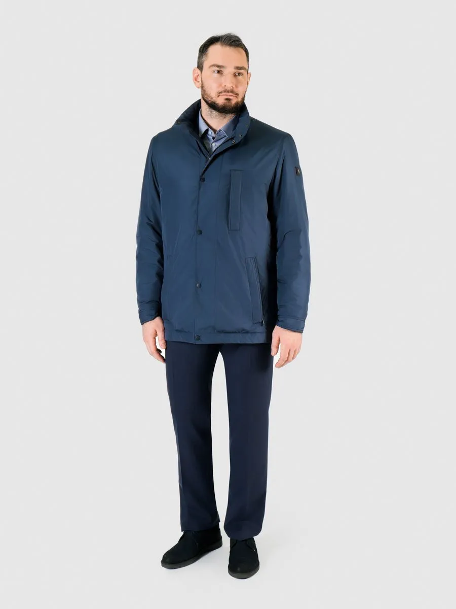 Легкая удлиненная куртка с воротником-стойкой - идеальный выбор для создания стильного образа. Она подойдет под классические костюмы и будет отличным дополнением к вашему гардеробу. Куртка выполнена в темно-синем цвете, который является классическим и всегда актуальным. Он легко сочетается с другими цветами и позволяет создавать разные образы. Внутри куртки находится подкладка с утеплителем из холлофайбера. Этот материал обладает отличными теплоизолирующими свойствами, поэтому вы будете чувствовать себя комфортно даже в холодные дни.Куртка легкая, что делает ее удобной в носке. Она не будет создавать ощущение тяжести и не будет ограничивать движения.В целом, эта удлиненная куртка является отличным выбором для тех, кто ценит комфорт, стиль и качество. Она подойдет для повседневной носки, а также для особых случаев, когда требуется создать элегантный образ.