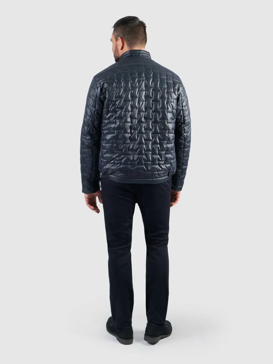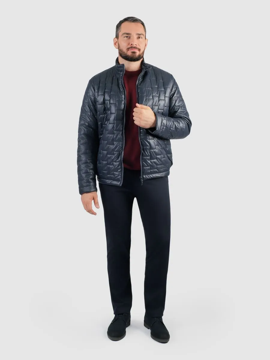 Мужская куртка, с утеплителем текстон (150гр./м2) представлена в темно-синем оттенке. Фигурная стежка делает эту куртку оригинальной и стильной. Куртка застегивается на молню, есть два боковых кармана. Воротних стойка позволяет добавить аксессуары в виде шарфа или снуда для дополнительного тепла. Универсальная курта, подходящая для отдыха и прогулок в осенние дни.