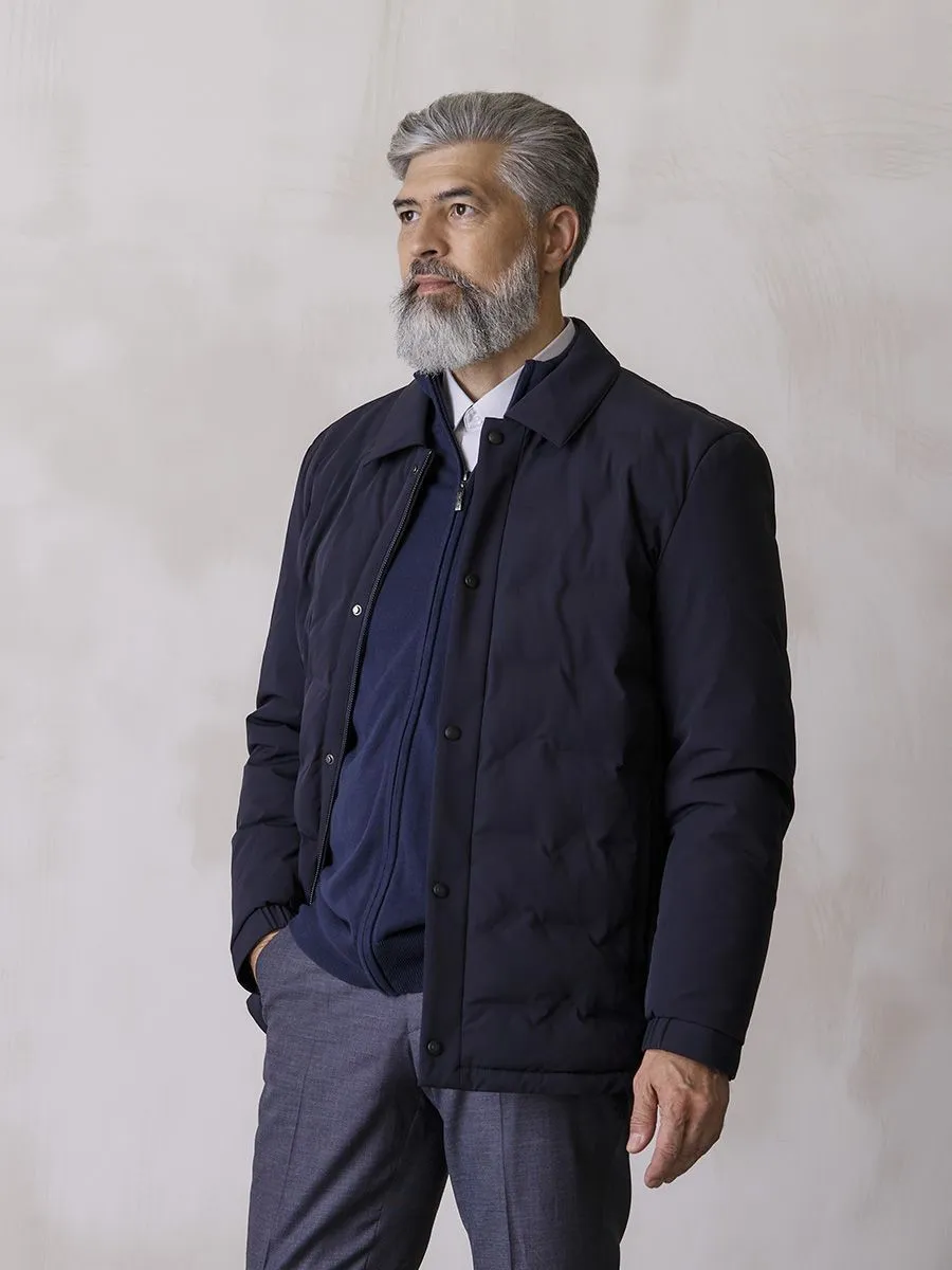 Куртка мужская утепленная укороченная в тёмно-синем цвете — это идеальный выбор для современных мужчин, стремящихся подчеркнуть свой стиль и комфорт в холодное время года. Отложной воротник придает строгости и элегантности образу.Укороченный фасон модель отлично гармонирует с любым типом одежды, будь то повседневные джинсы или более строгие брюки. Удобные карманы добавляют функциональности, а продуманные детали подчеркивают модный дизайн. Эта куртка — не просто элемент гардероба, а настоящий компаньон, который станет незаменимым в вашем арсенале осенне-зимней одежды. Тёмно-синие оттенки придают ей универсальность, позволяя легко сочетать с другими цветами и стилями.