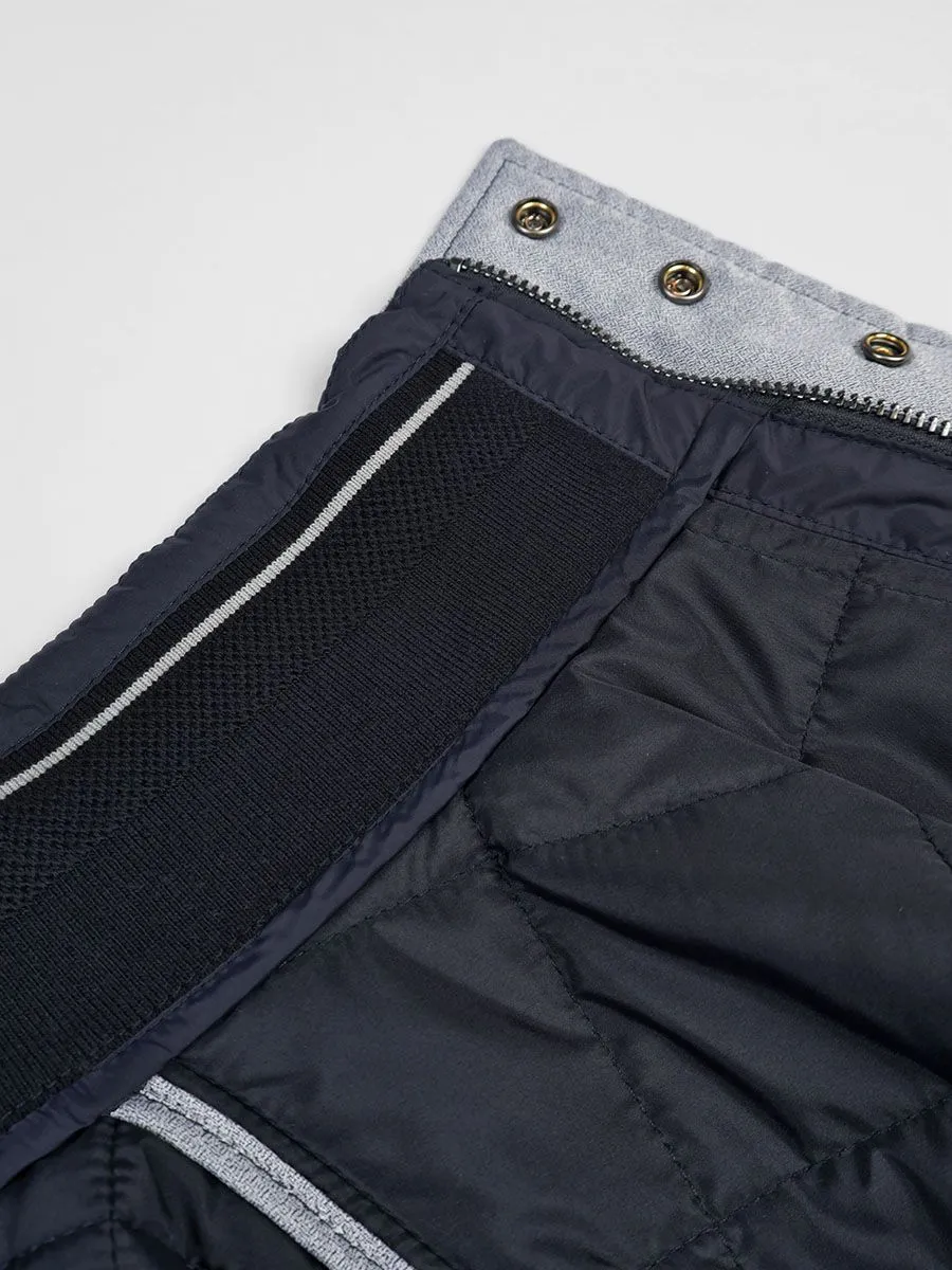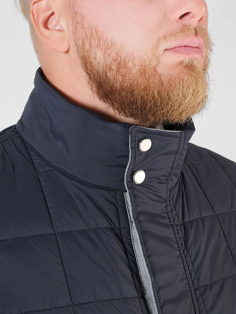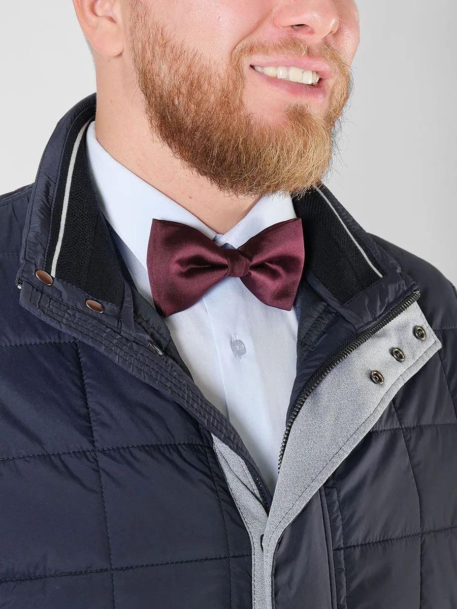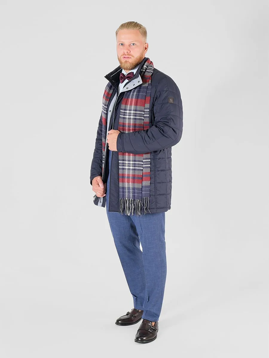 Стеганная мужская куртка от Peplos подойдет любителям классического стиля. Удлиненный силуэт хорошо подходит для носки поверх пиджака, к тому же поясница защищена более надежно. Застежка центрально-бортовая до верха застегивается на замок-молнию и шесть потайных кнопок на планке и две сквозные кнопки на стойке. Внутри у воротника есть отделка из трикотажного материала, что обеспечивает комфорт при носке. Воротник красиво смотрится в расстегнутом виде, за счет контрастной планки серого цвета. Низ рукавов с манжетами, которые регулируется с помощью паты и двух кнопок.