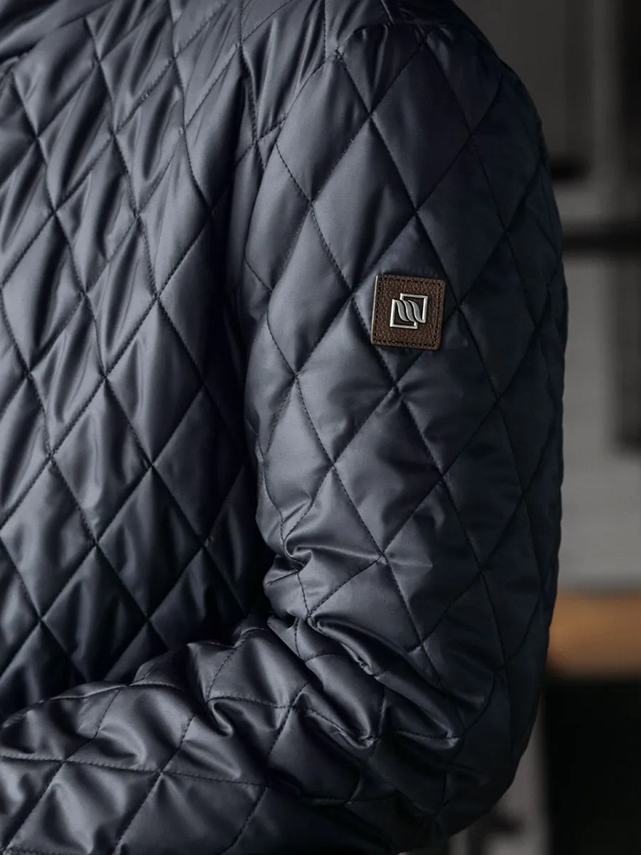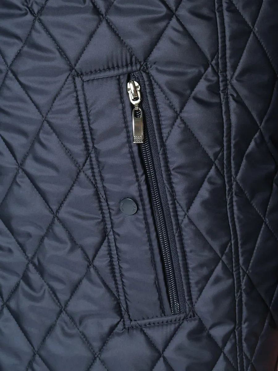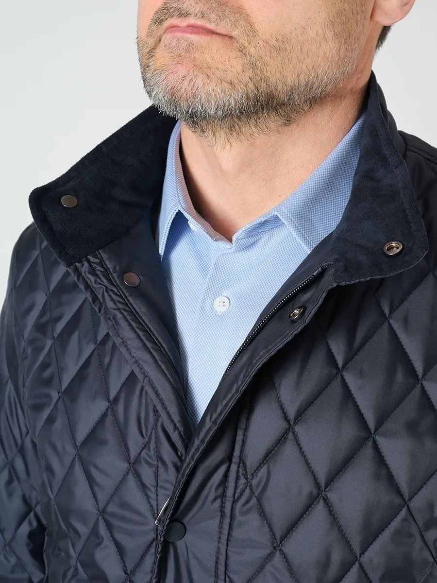 Демисезонная куртка для мужчин изготовлена из стеганной ткани, что хорошо видно по образовавшемуся рисунку в виде небольших ромбиков. У куртки удлиненный прямой силуэт, который позволяет легко надевать пиджаки различной длины. Застегивается куртка на центральную застежку-молнию, а сверху есть декоративная планка на кнопках. Заканчивается застежка воротником-стойкой, который имеет мягкую и нежную внутреннюю отделку в цвет основной ткани. Куртка имеет современный утеплитель холлофайбер, обладающий повышенной мягкостью, легкостью и эластичностью. Утеплитель позволяет обеспечить длительный комфорт при носке за счет сбалансированных показателей воздухопроницаемости, суммарного теплового сопротивления и влагоотведения из внутреннего пространства.