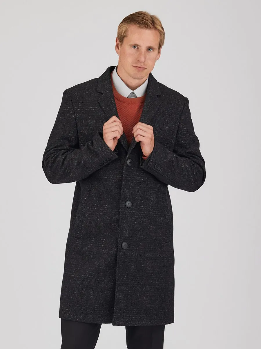 Элегантное мужское пальто, выполненное в классическом полуприталенном силуэте, станет безупречным дополнением вашего гардероба. Благородная чёрная пестроткань с деликатной рыжинкой придает модели изысканность и глубину. Лёгкий вес пальто обеспечивает комфорт в ношении, а ткань верха на трикотажной основе гарантирует прекрасную посадку и долговечность.
