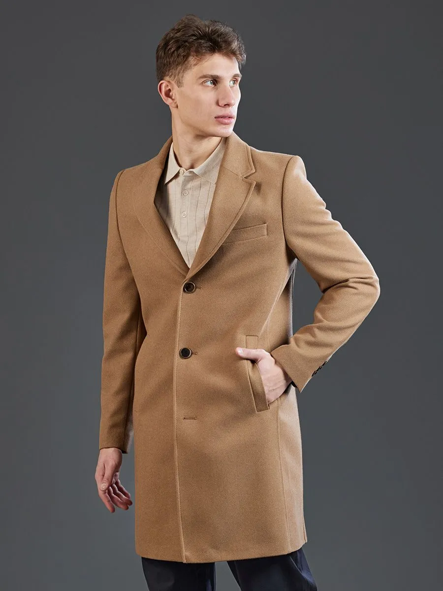 Модель выполнена в теплом оттенке верблюжьей шерсти, который относится к категории нейтральных, но при этом обладает выраженным характером. Оттенок кэмел универсально сочетается с широким спектром цветов в мужском гардеробе: от глубоких индиго и шоколадного до оливкового, кремового и всех оттенков серого. Полуприлегающий крой пальто следует естественным линиям мужской фигуры, подчеркивая плечи и создавая чистый, вытянутый силуэт. Он не стесняет движений, обеспечивая комфорт в носке в течение всего дня, и при этом сохраняет опрятный, завершенный вид как в застегнутом, так и в расстегнутом состоянии. Длина модели - до середины бедра, что является оптимальным для сохранения тепла и пропорций. У изделия классический воротник с лацканом. Угол наклона и ширина лацканов рассчитаны для ношения с галстуком и пиджаком, но также гармонично смотрятся поверх водолазки или тонкого свитера. В целом, данное пальто представляет собой сбалансированное сочетание классической формы, функциональности и современных требований к комфорту. Его рыжий цвет, полуприлегающий силуэт, классический воротник с лацканами, застежка на пуговицы и карман на груди создают целостный образ, который подходит для самых разных ситуаций. Это инвестиция в базовый элемент гардероба, который будет служить владельцу долгие годы, не теряя своей актуальности и элегантности. Модель демонстрирует высокое качество пошива и внимания к деталям.